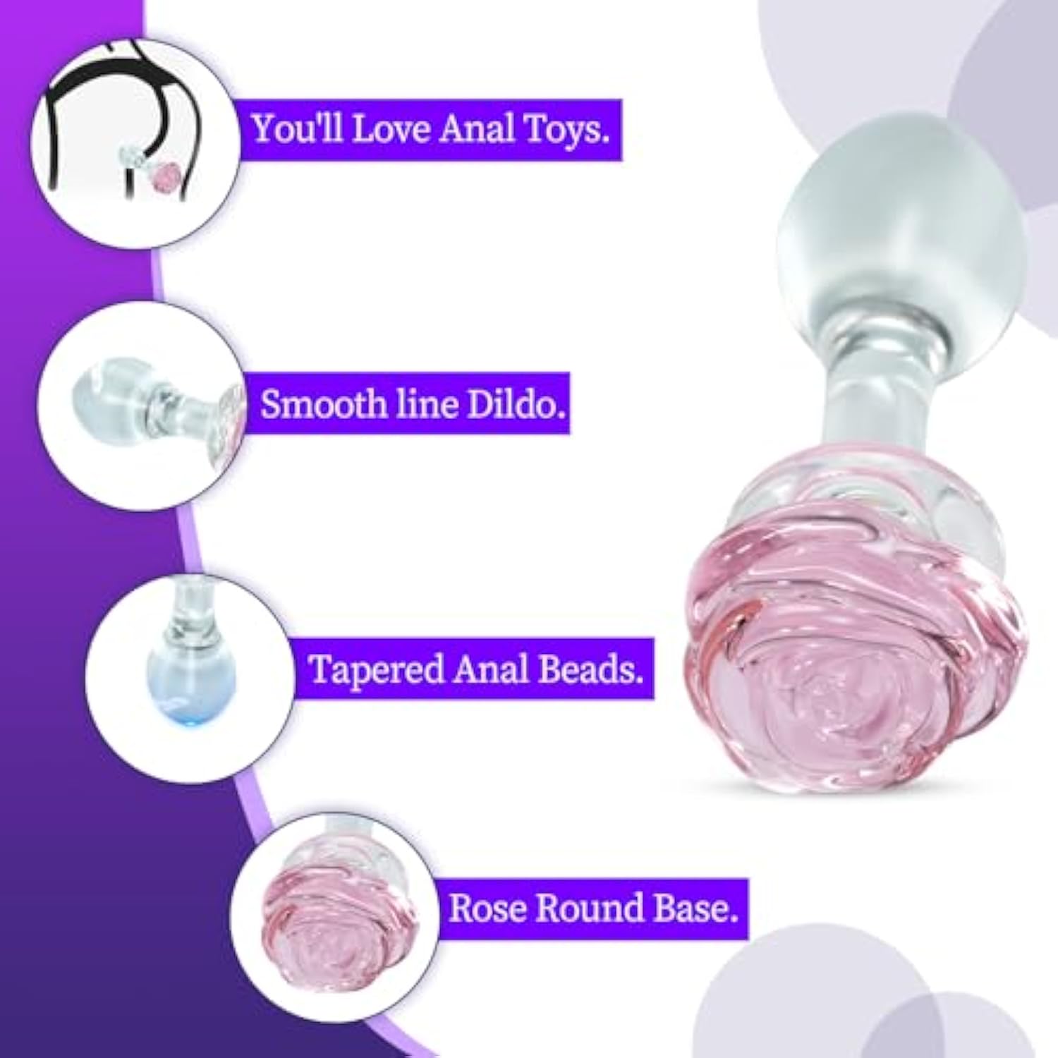 3 Piece Butt Plugs Small Medium Large Glass Rose Analplugs For Men Women Sm Masturbation Anal Training Pink Anal Dilator Adult Sex Toys