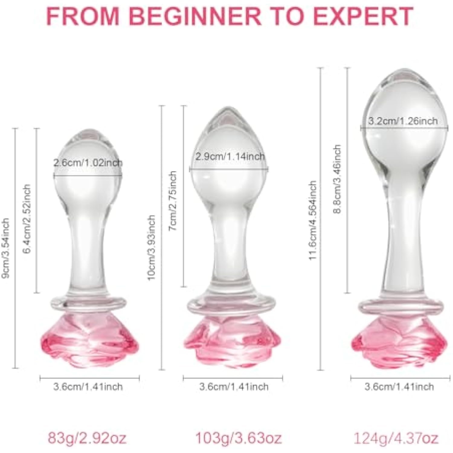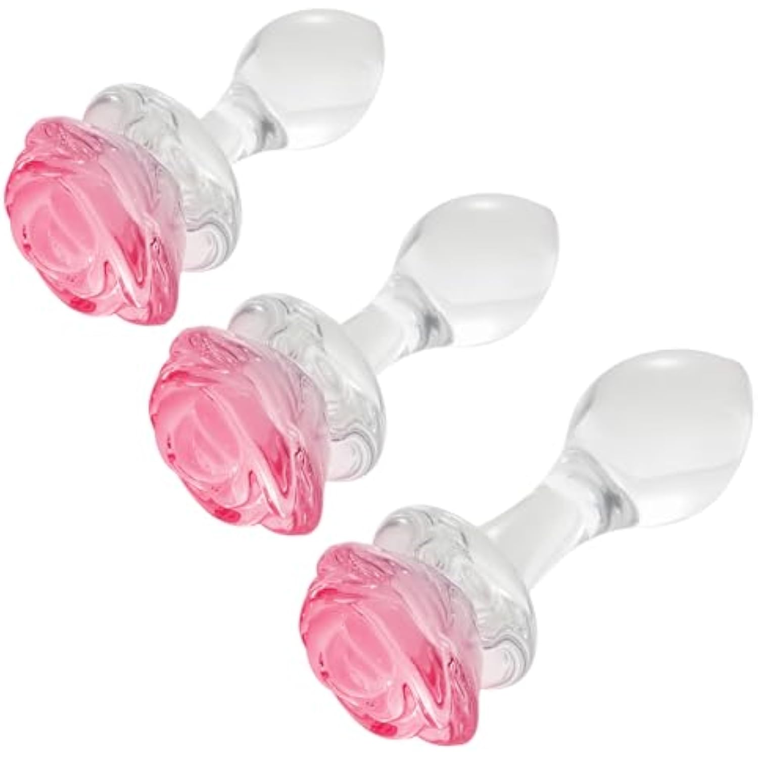 3-Piece Rose And Droplet Shaped Glass Anal Plug Set, Crystal Butt Plugs, Anal Stimulation Trainer, Anus Expander Training Sex Toys Anal Masturbation Plug For Adult Men Women Gay And Couples