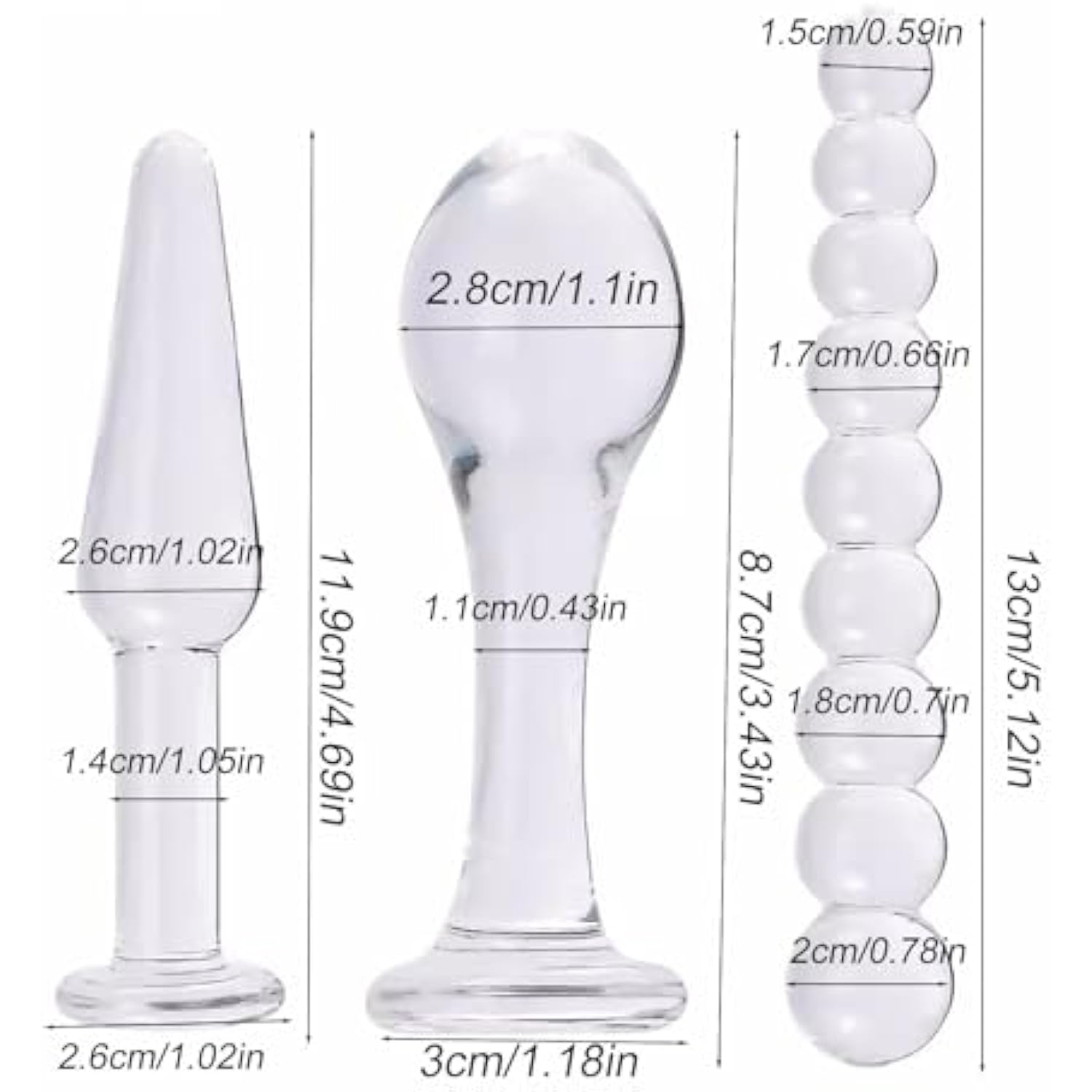 - 3 Styles Fantastic Anal Training Set: Comes In 3 Styles, Three Stages Of Pleasure Exploration, Made Of Crystal Glass, Easy To Clean, They Are Smooth And Cold To The Touch For Better Penetration, For Anal And Vaginal Stimulation, Providing Pleasure For G