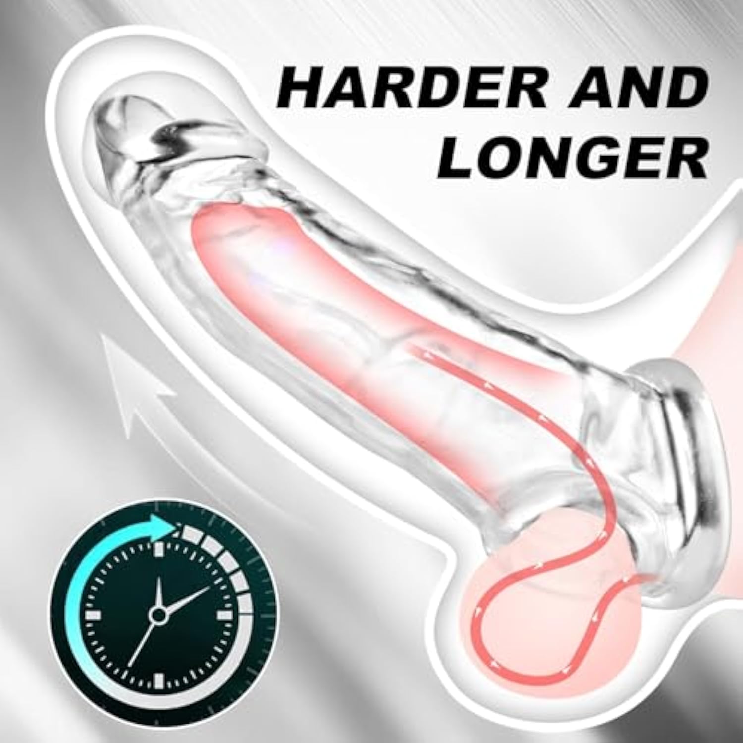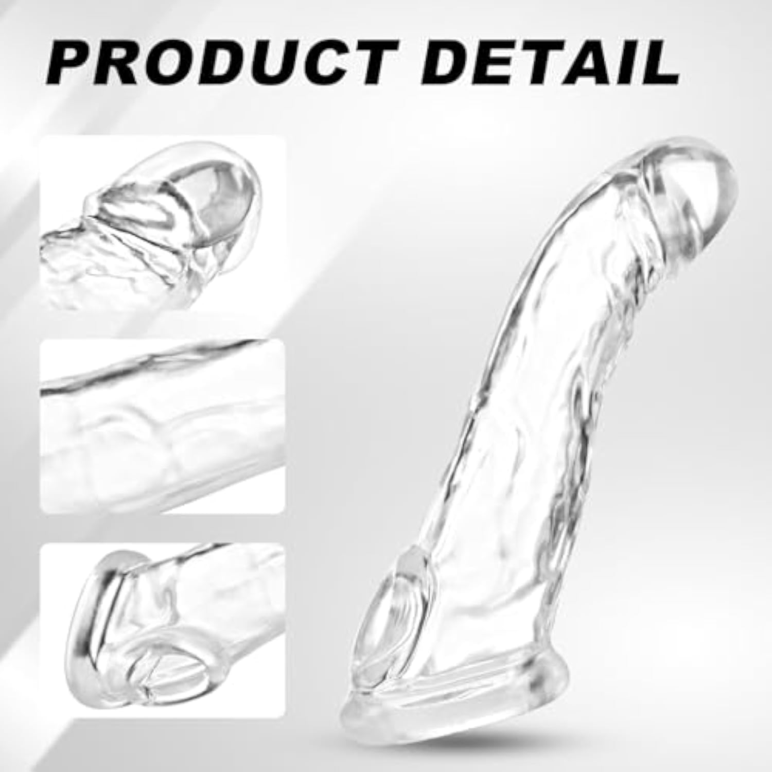 3 Sizes Penis Sleeve Set,Reusable Penis Sleeve Extender,Tpe Penis Extender,Penis Enlarger,Realistic Texture Men'S Sleeve,Male Penis Sex Toy,Penis Cuff Thickened Testicle Ring Male Sex Toy-Transparent
