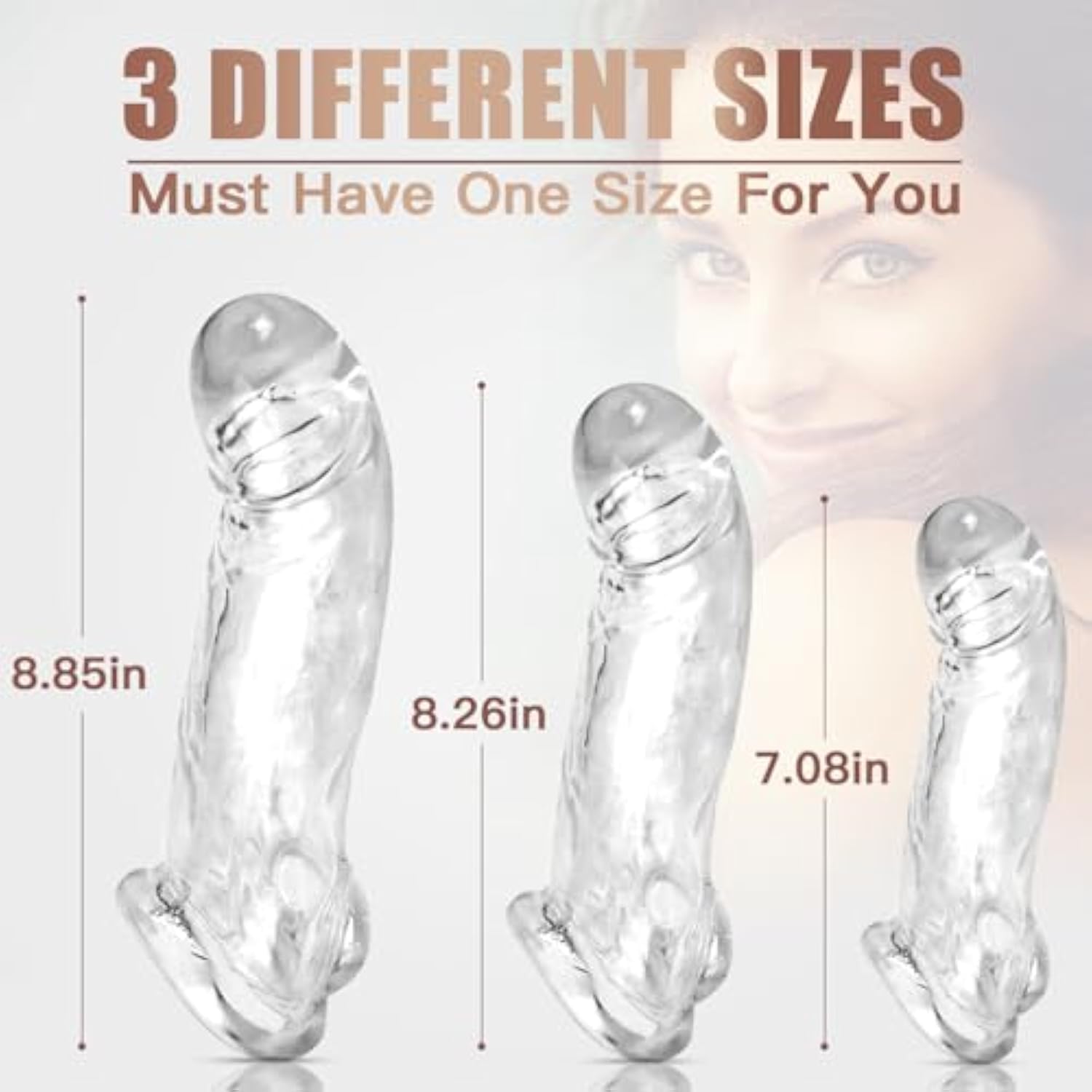 ?3 Size Penis Sleeve Cock Ring? - Our Penis Sleeve Product Included 3 Different Size, It Can Suit For Most Of The Adults, You Can Easy To Adjust Your Size For Different Pleasure, It Allow You And Your Couples To Enjoy The Fun With This Penis Extender. | | ?Reusable Cock Sleeve Design? - This Cock Sleeve Extender Use Good Quality Material, It'S Soft, Elastic And Durable, You Can Easy To Wash It And Keep It In Dry Place, Reusable Function Make It Valuable For Most Of Men Couples. | | ?High Quality Soft Material? - The Penis Sheath Made Of Good Tpe Material, It'S Very Soft And Durable, You Can Easy To Extend The Length To Suitable Size, This Penis Extension Can Let You And Your Partner Get Safety Comfortable Experience When You Playing Fun, It'S Not Only A Penis Extender, But Also A Good Penis Sexual Enhancers Enlarger. | | ?Easy To Clean? - Our Cock Sleeve Is Waterproof Design, It Can Easy To Clean It Directly By Water, Please Attention Keep It Dry After Wash, It Can Also Extend The Penis Sleve Using Days, And The Clear Color Make It More Easy To Clean It. | | ?Multi-Purpose And Privacy Package? - This Adult Sex Toy Can Be Used To Stimulate Anal, Clitoral, G-Spot, Nipple And Other Sensitive Areas, Suitable For Men, Women And Couples. Products Using Discreet Packaging A Small Box No One Will Know What Is Inside,