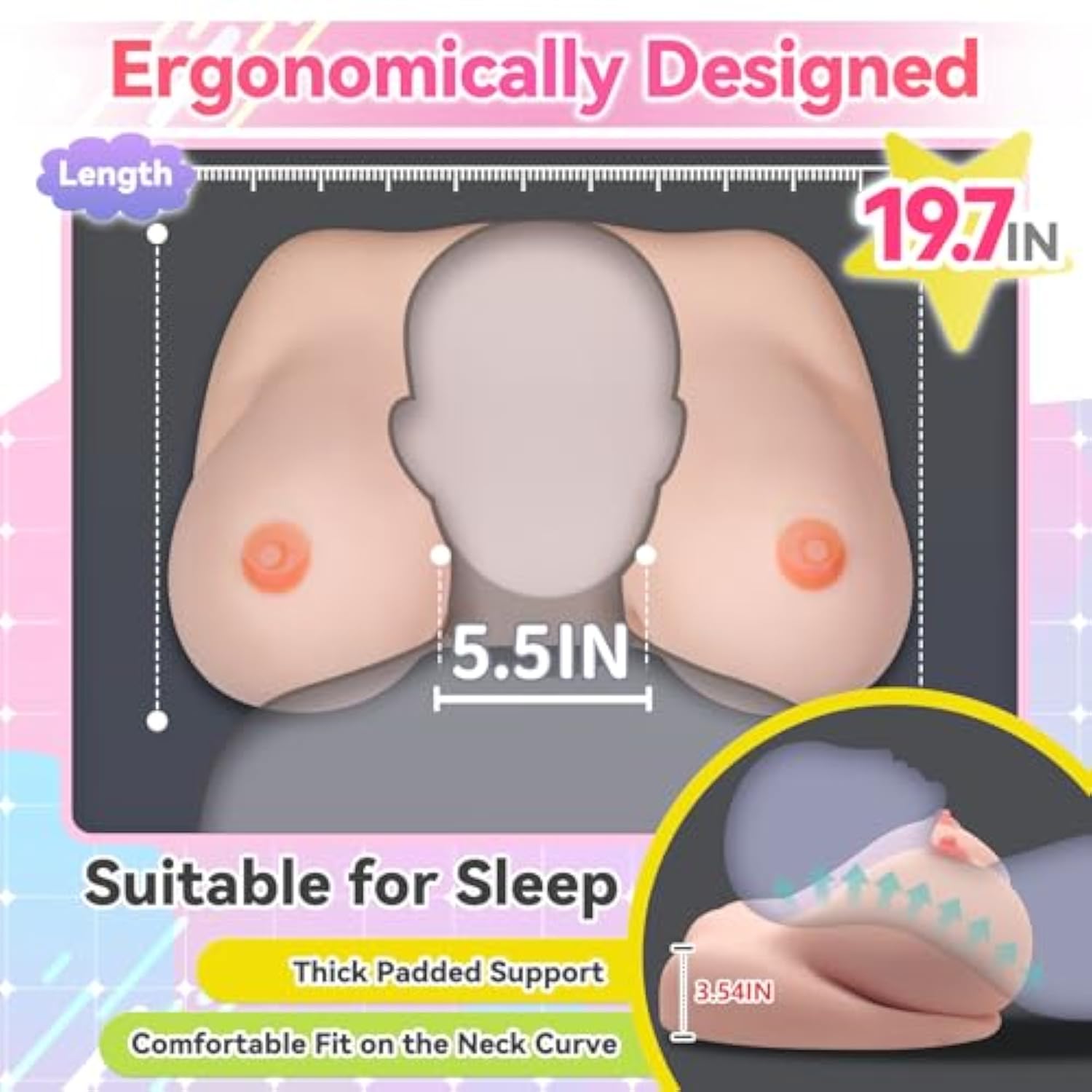 | 39.2Lb Big Boobs Pillow: This Realistic Big Breast Pillow Offers The Soft Touch Of Real Breasts, A Chest Pillow To Rely On. The Big Breasts Provide A Strong Visual Impact, Combined With A Soft Grip That Gives You The Feeling Of Your Ideal Woman | | Jelly Soft Breasts: Modeled After A Sexy Big-Breasted Woman, You Can Gently Caress And Squeeze The Big Breasts, Feeling Their Softness And Elasticity. When You’Re Tired, Rest Your Head On It, Stroke It While You Sleep, And Drift Into A Peaceful, Sweet Dream | | Ergonomi
