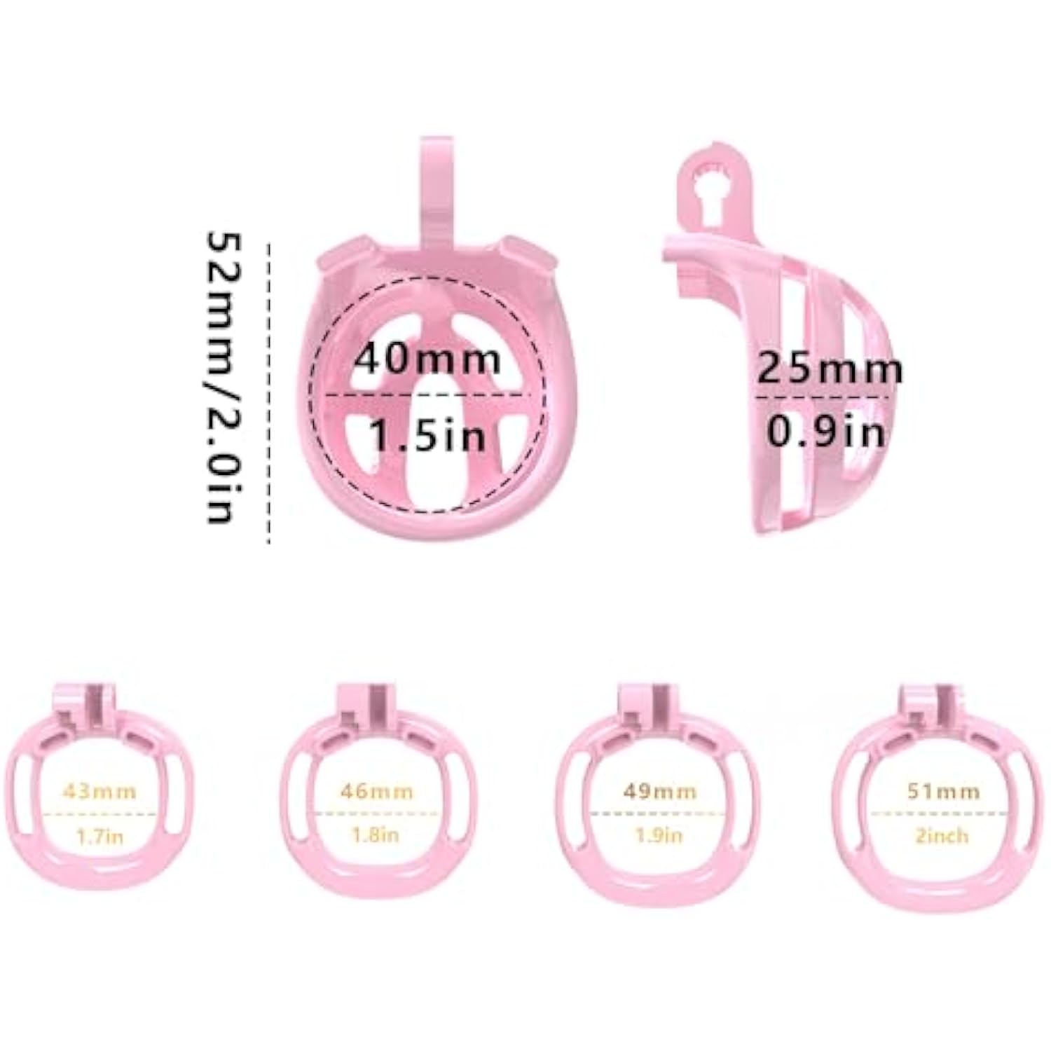3D Printed Chastity Cage Chastity Devices For Men Bondage Gear & Accessories Lightweight Plastic Cock Cage Slave Tool With 4 Sizes Rings And Elastic Belt (Pink, A)