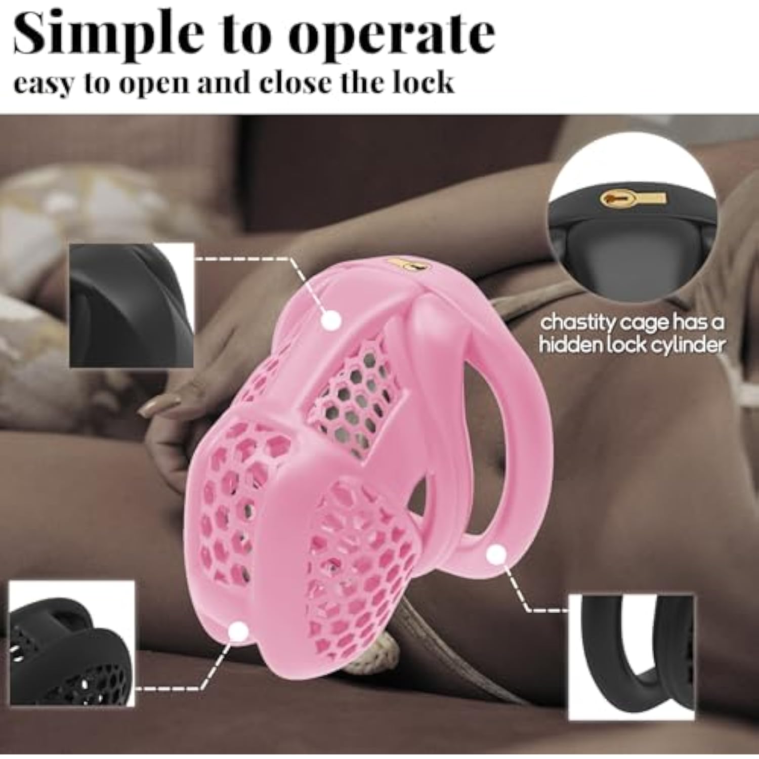 3D Printed Cock Cage With 4 Curved Snap Rings Small Honeycomb Chastity Devices For Men Sm Fetish Extreme Bondage Sex Toys For Men Trainer (Pink,Arc-Small)