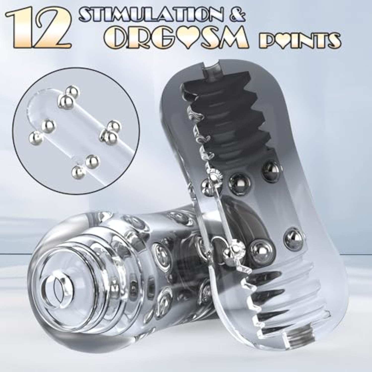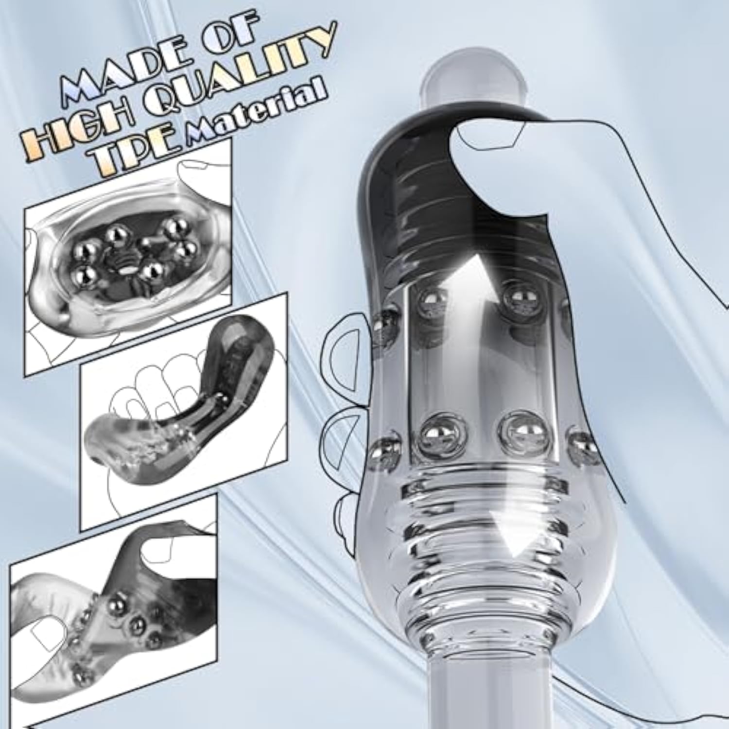 | Male Masturbator With 12 Pleasure Beads: Features 2 Rows Of 12 Grade Silver Beads That Precisely Massage The Shaft And Head, Combining Twisting Motions And Gentle Suction For Intense Pleasure.. The 12 Precision-Placed Steel Balls Deliver Waves Of Intense Squeezing And Massaging Action, Mimicking—And Even Surpassing—Realistic Textures For An Unmatched Solo Experience. | | Manual Control With Adjustable Suction: Take Full Command Of Your Pleasure With This Manual Masturbator, Offering Superior Control Over Speed And Pressure. Simply Press The Air Vent For Powerful Suction Or Squeeze The Toy For A Thrilling "Mouth-Like" Sensation—Customize Your Experience For The Ultimate Climax. | | Body-Safe Ultra-Elastic Tpe Material: Crafted From Premium, Skin-Friendly Tpe, This Male Stroker Is Super Soft, Stretchable, And Tear-Resistant. Its High Elasticity Accommodates All Sizes While Providing A Lifelike, Snug Fit. Twist, Stretch, And Enjoy Without Worry—Comfort And Safety . | | Ergonomic Non-Slip Grip Semi-Transparent Design: The Textured Prismatic Exterior Ensures A Secure Hold For Effortless Pumping, Rotating, And Squeezing. The Semi-Clear Body Adds Visual Excitement, Letting You Watch The Action While Enhancing Realism For A More Immersive Experience. | | Easy To Clean Portable For Discreet Use: Designed For Convenience, The Waterproof Sleeve Removes Quickly For Hassle-Free Cleaning. Compact And Lightweight, It’S Perfect For Travel Or Storage. | |