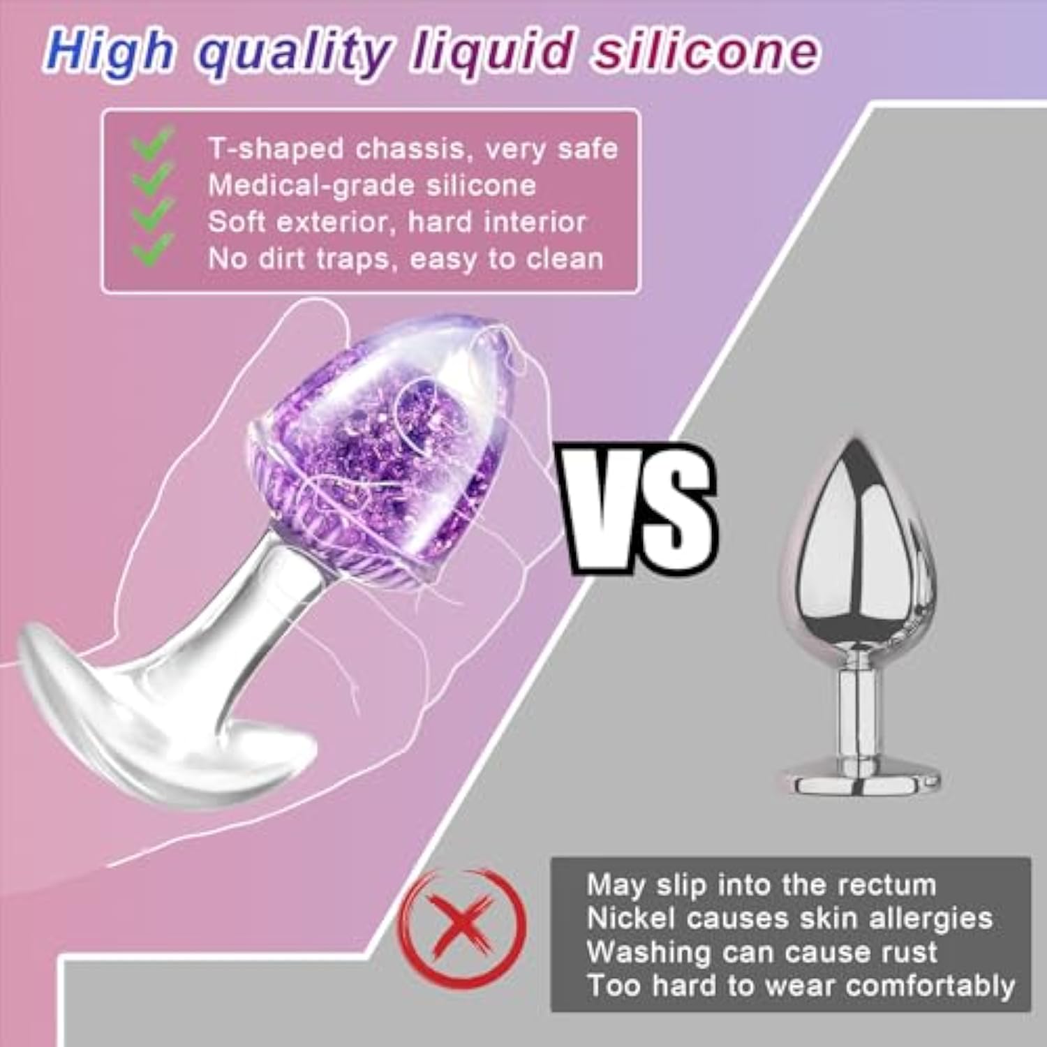 | ?3-Piece Set For All Levels?This Set Includes Small, Medium, And Large-Sized Anal Plugs, Making It Perfect For Both Beginners And Experienced Users. Each Plug Features A Luxurious Crystal Glass Ball For Added Weight And Texture, Designed To Deliver G-Spot And Prostate Stimulation. | | ?Premium Liquid Silicone Material?Made From Soft, High-Quality Liquid Silicone, These Anal Plugs Are Body-Safe, Waterproof, And Easy To Clean. The Flexible Silicone Provides A Smooth, Comfortable Experience That’S Gentle On Your Skin And Superior To Rigid Materials Like Stainless Steel. | | ?T-Base For Safety Comfort?The T-Shaped Base Ensures The Plug Stays Securely In Place And Prevents It From Slipping In. The Ergonomic Design Makes Them Comfortable For Long-Term Wear, Whether You'Re Enjoying A Quiet Evening At Home Or Using It During Travel. | | ?Luxury Crystal Design?Each Anal Plug Features An Elegant Crystal Glass Ball Embedded Within The Soft, Transparent Liquid Silicone. The Dazzling, Sparkling Design Adds A Touch Of Luxury And Sophistication, Making It A Perfect Gift For Your Partner Or A Special Treat For Yourself. | | ?Discreet Packaging Privacy?We Prioritize Your Privacy. These Plugs Come In Discreet Packaging With No Sensitive Markings, So You Can Feel Confident And Comfortable When Receiving Or Gifting Your Product. | |