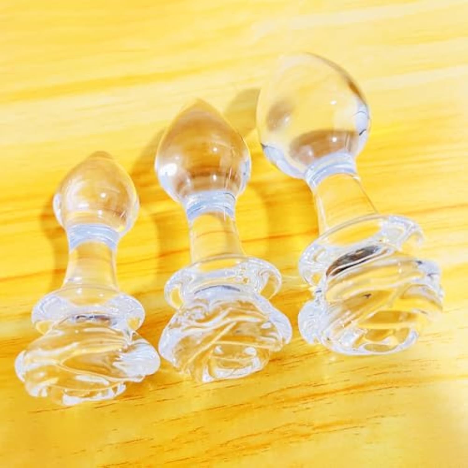 3Pcs Clear Rose Glass Anal Plug, Small Medium And Big Clear Glass Butt Plug Training Set Anal Plug Trainer Kit Sex Slave Anus Dilator Prostate Massage Anal Sex Toy For Women Men Couple