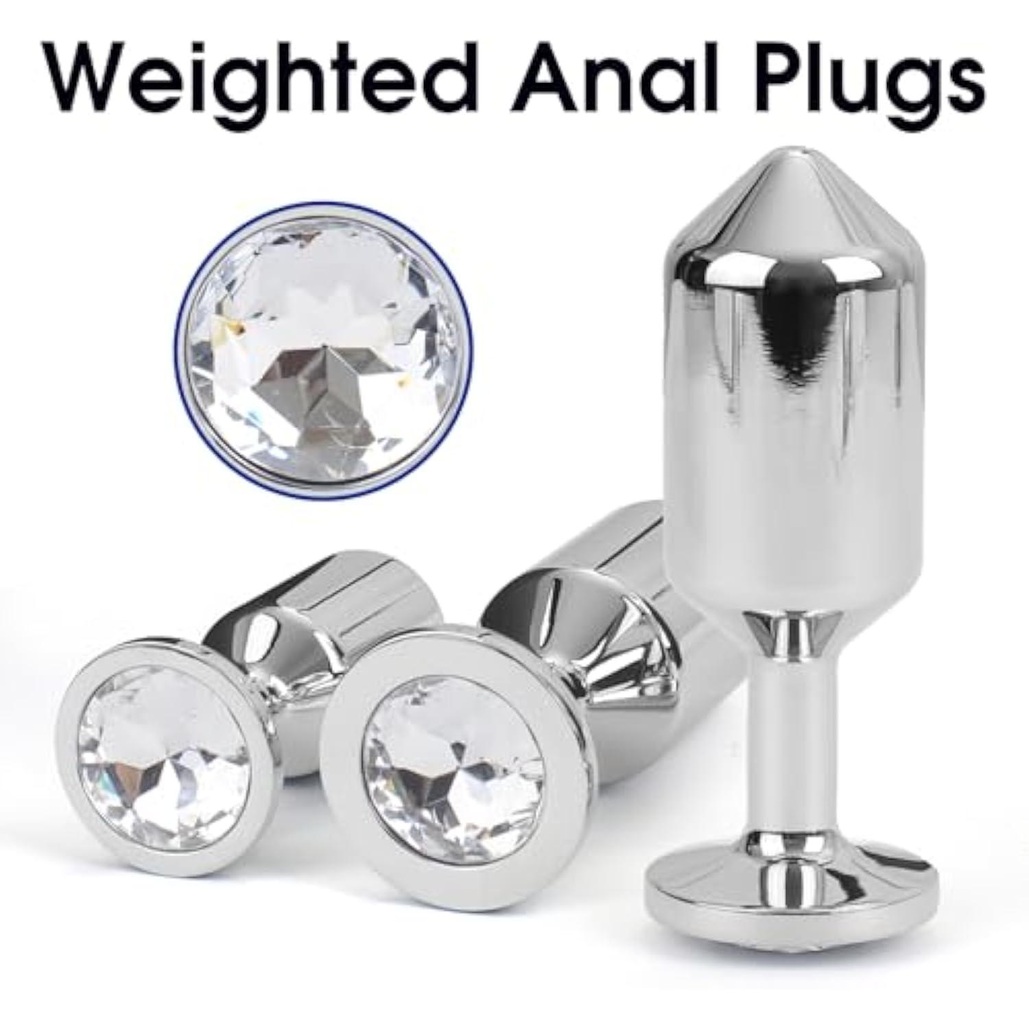 3Pcs Premium Metal Weighted Anal Plugs With Luxury Jewel, Anal Training Kit Sex Toy For Men Women Couples