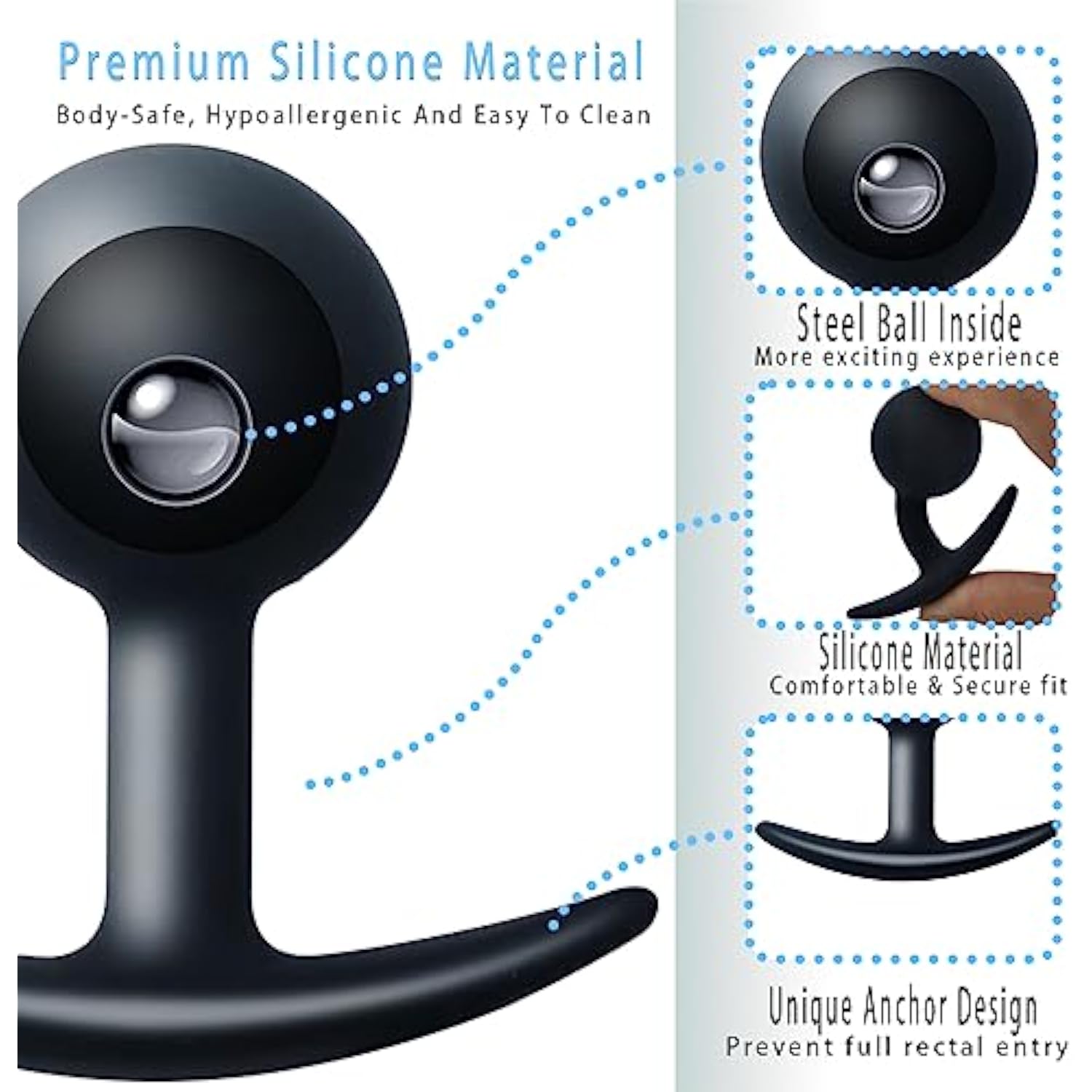 3Pcs Silicone Anal Plug,Anal Toys With Stimulating Beads,Anal Sex Toys For Men And Women, Silicone Material Anal Toy,Anal Plugs For Effective Anal Training And Sexual Pleasure(Black)