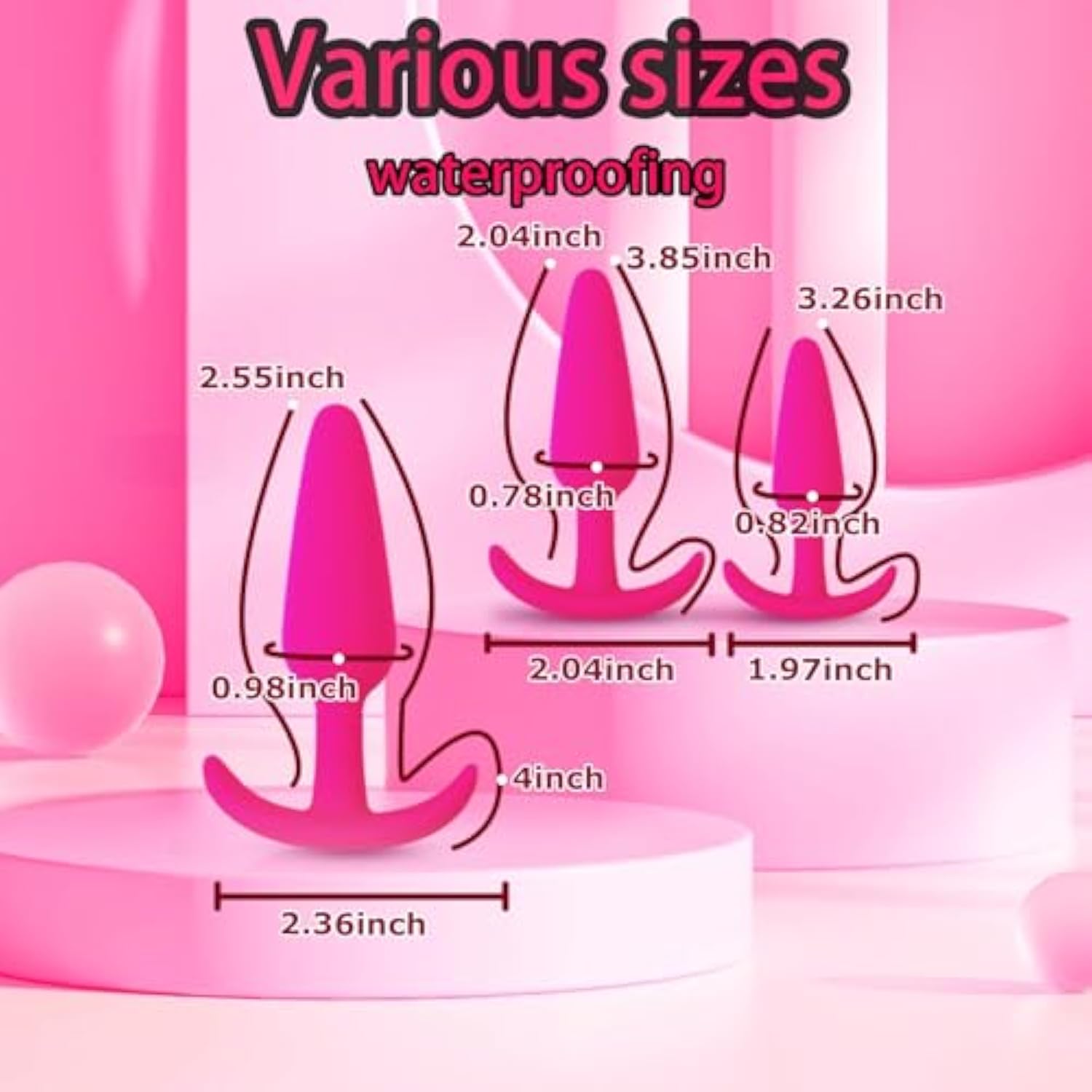 3Pcs Silicone Anal Plug Beads Kit Trainer Set Beginners To Advanced Player For Comfortable Long-Term Wear Training Set Silicone Butt Plug For Men Women Couples Relaxing (Pink) Fba