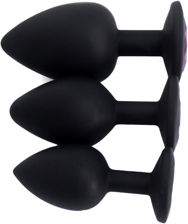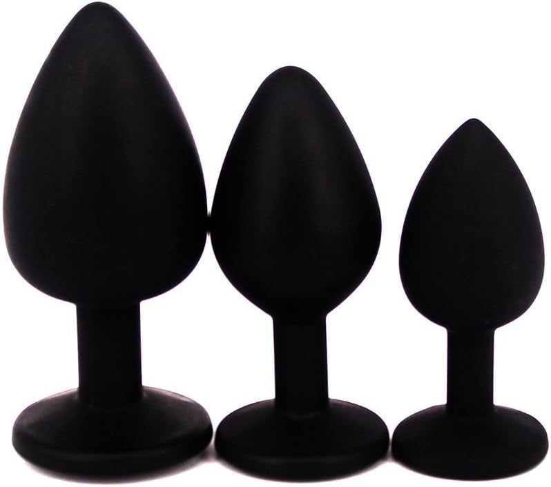 3PCS Silicone Jeweled Anal Plug Set, Starter Kit for Men & Women (Black)