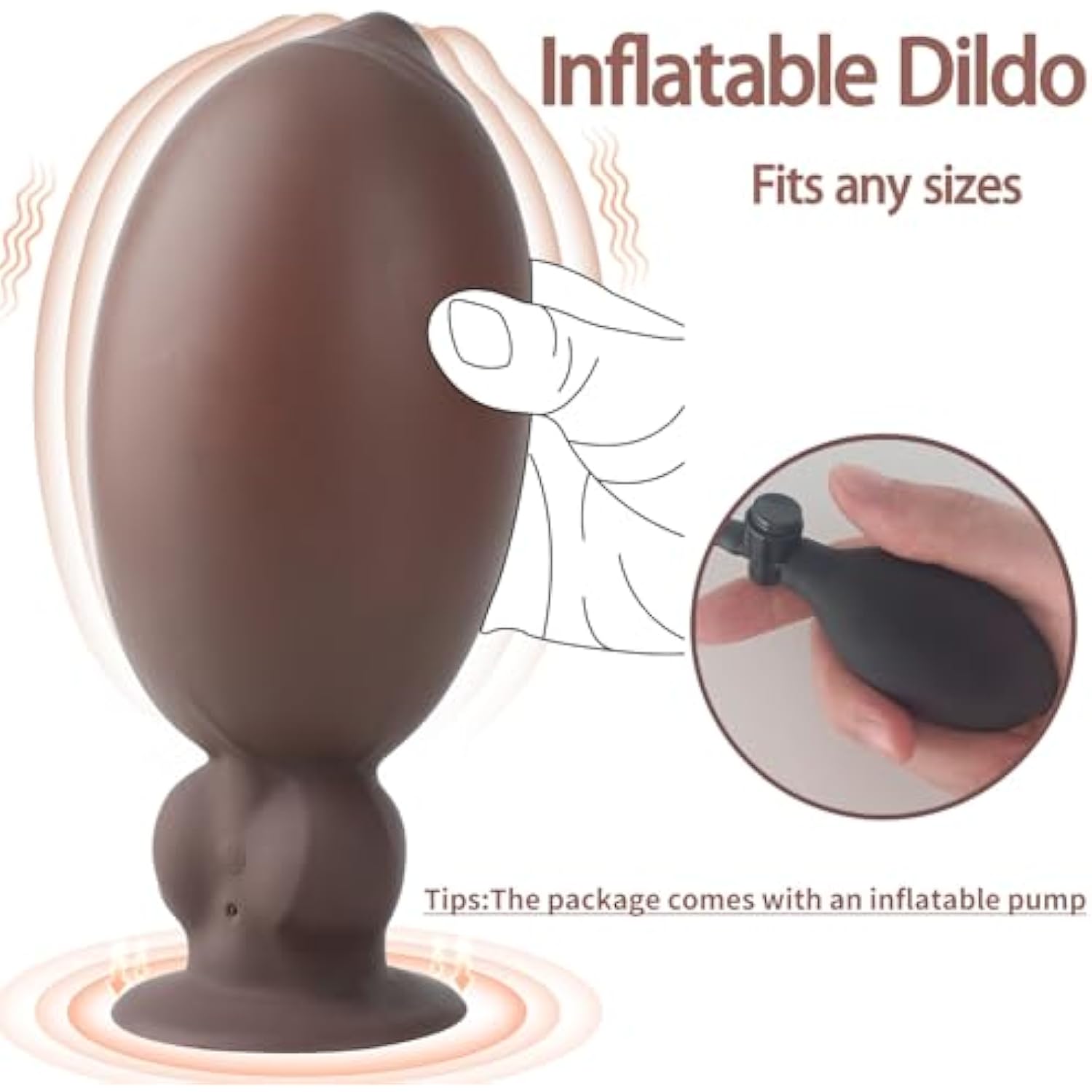 4.7'' To 8.3'' Anal Dildo Vibrator, Inflatable Dildo Black Dildo Vibrating Dildo With Adjustable Girth, Anal Sex Toys G Spot Stimulator Prostate Massager, Remote Control Couples Sex Toy (Brown)