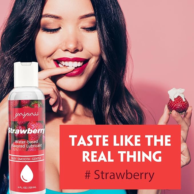 Strawberry Flavored Water-Based Lube, 4 fl oz, Sugar-Free, Non-Sticky, Latex Safe