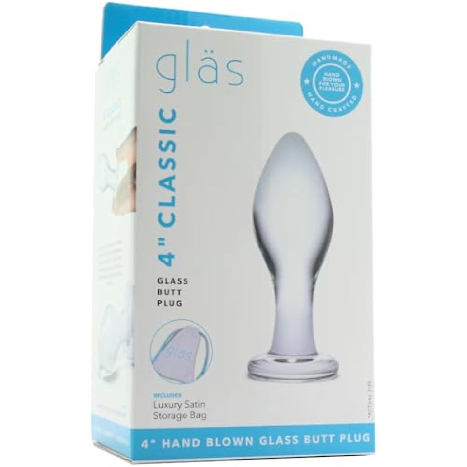 4 Inch Classic Glass Butt Plug With Lube 1Oz | Anal Sex Toys | Butt Plugs | Anal Plugs