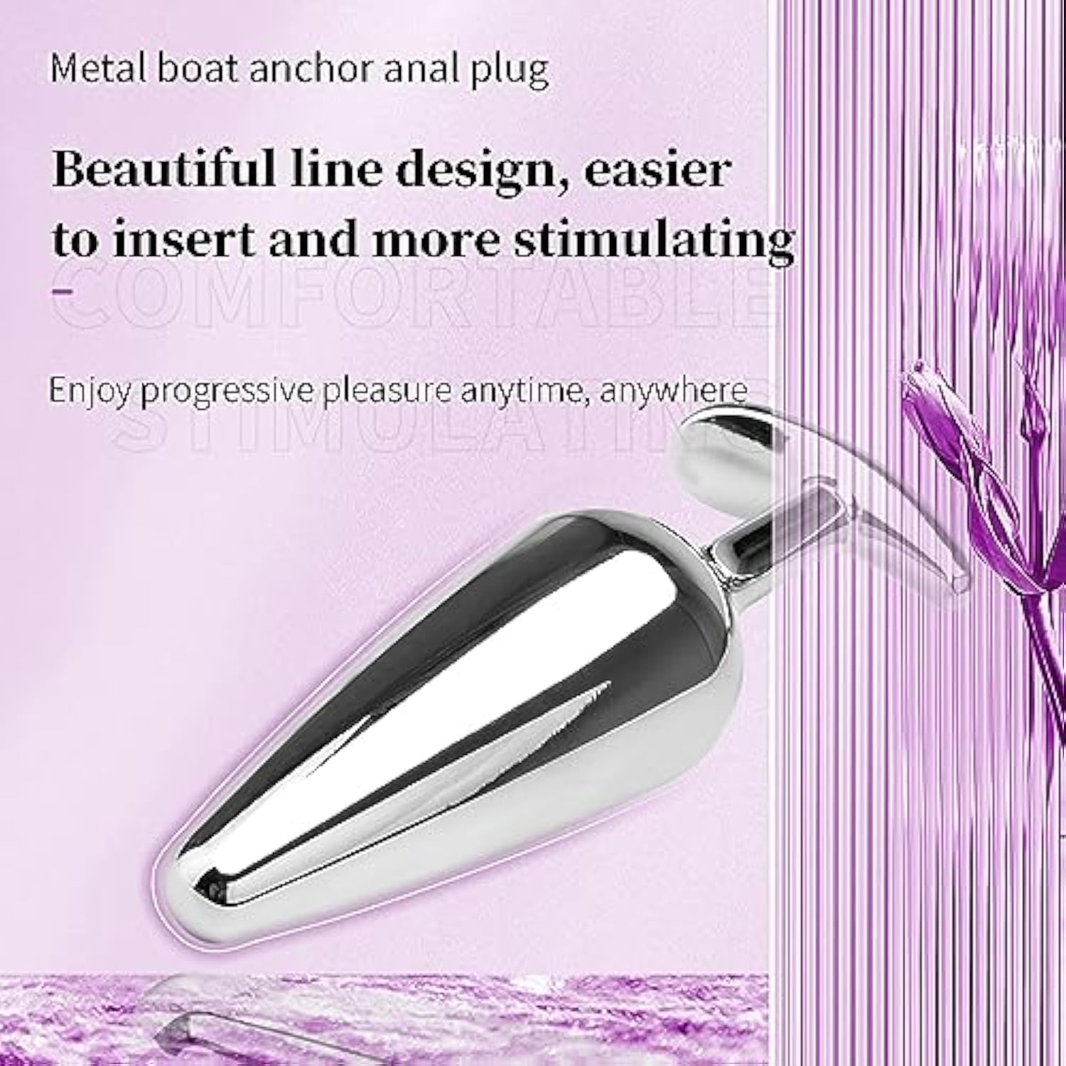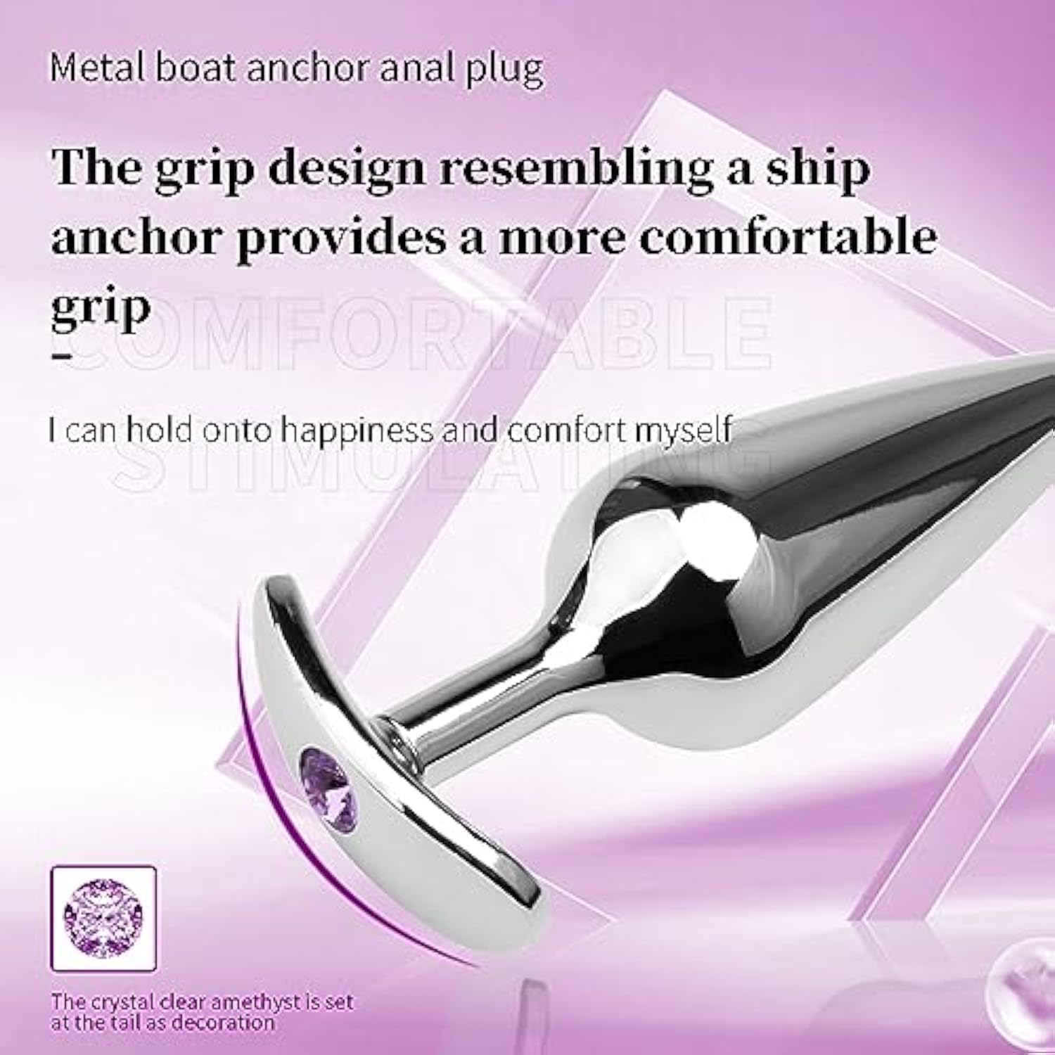 4 Pcs Metal Silvery Butt Plug Set With Anchor Jewelry Base Adult Sex Sm Toys Smooth Metal Anal Plug Kit For Couple(B)