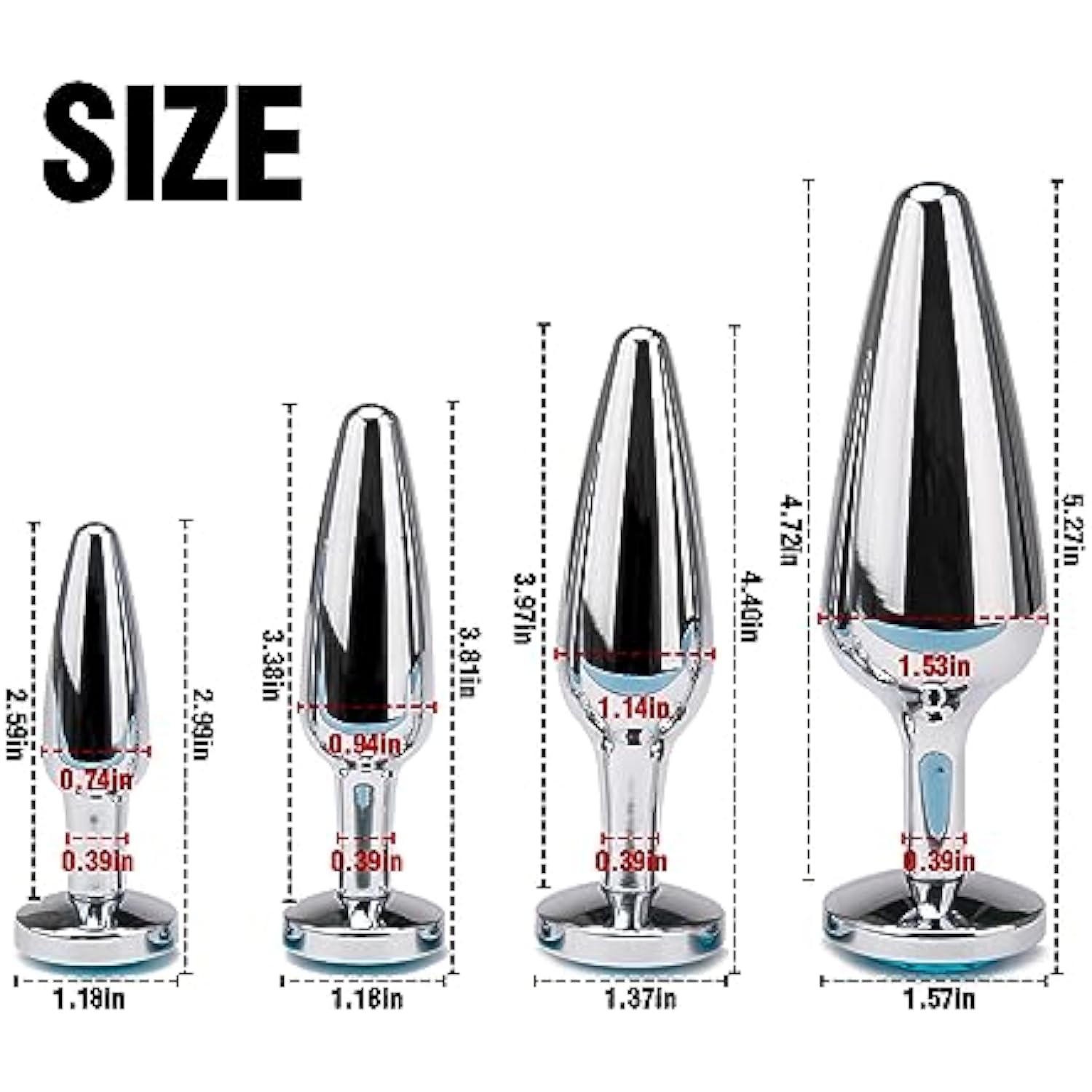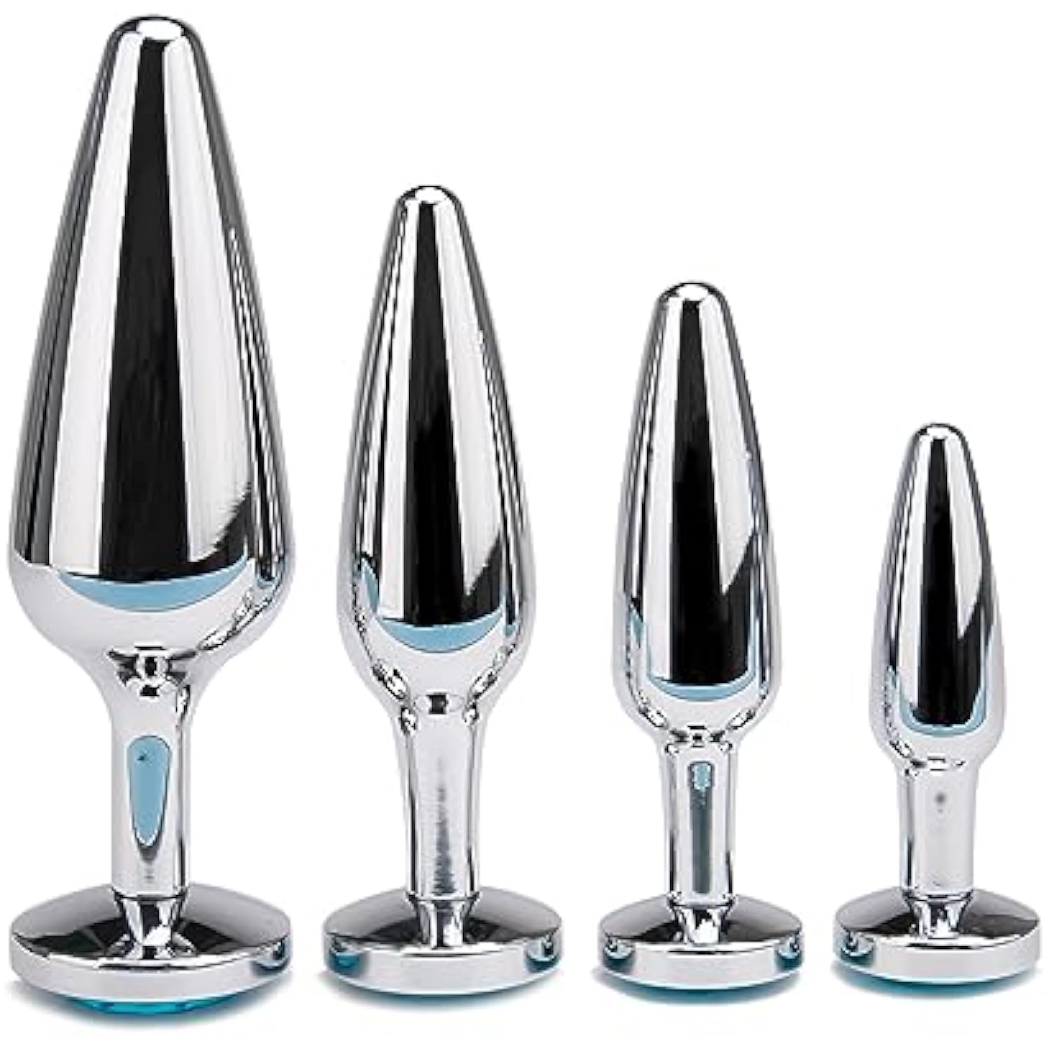 4 Pcs Metal Silvery Butt Plug Set With Round Jewelry Base Adult Sex Sm Toys Smooth Metal Anal Plug Kit For Couple(A)