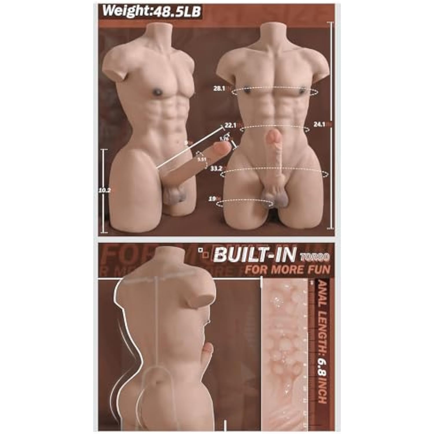 48.5Lb Male Sex Doll For Women With 9In Flexible Huge Dildo,Realistic 3D Muscular Male Torso Sex Dolls With Tight Anal For Men Gay Couple, Big Penis Sex Toy For Female Masturbation