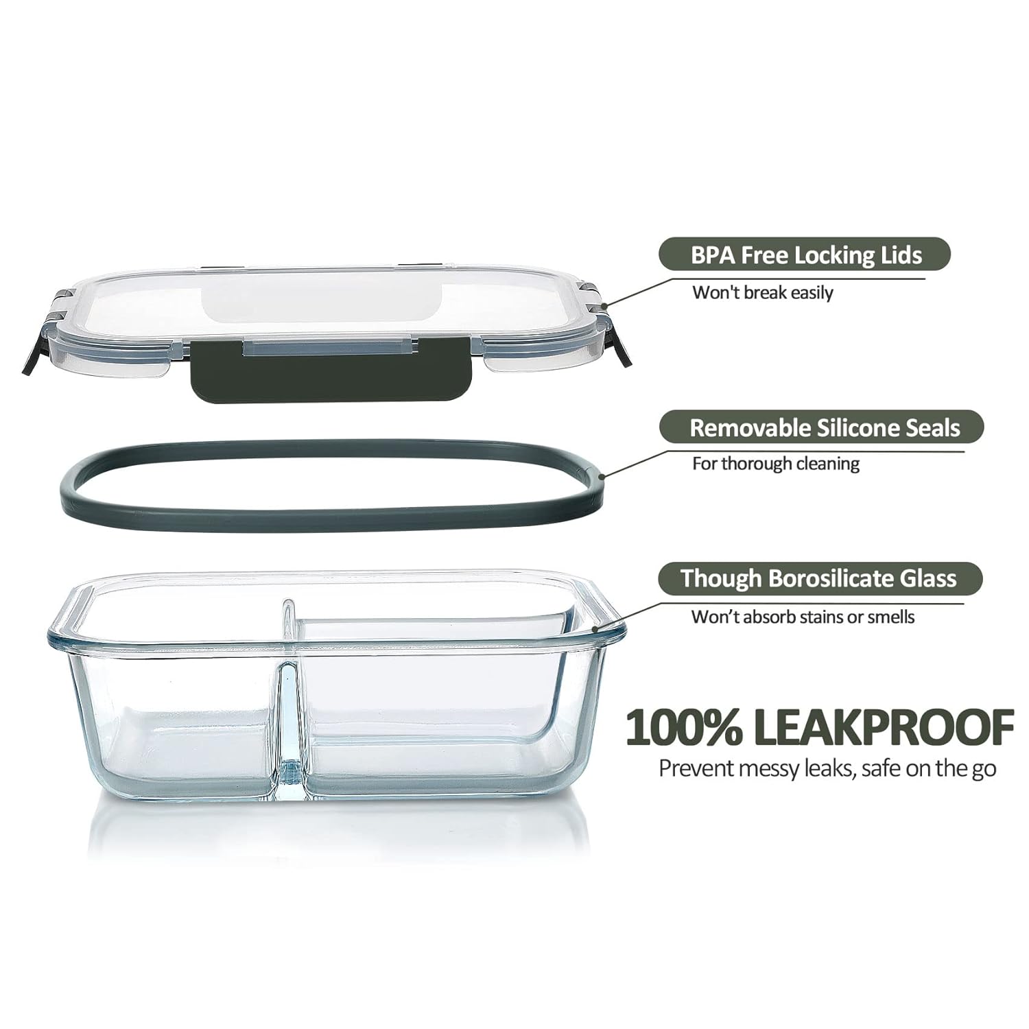 - Portion Control Feature:The Portion Control Feature Of The Divided Glass Lunch Containers Allows You To Regain Control Over Your Meals. The Two Compartments Glass Containers Make It Easy To Organize Your Meals And Keep Your Diet Plan.