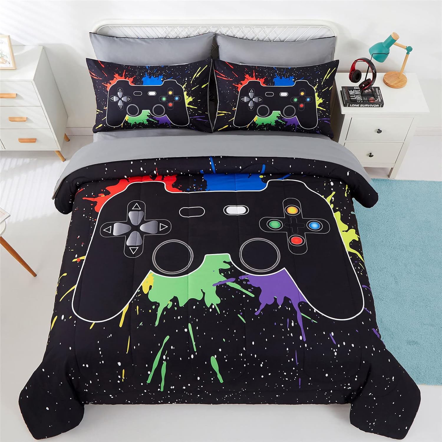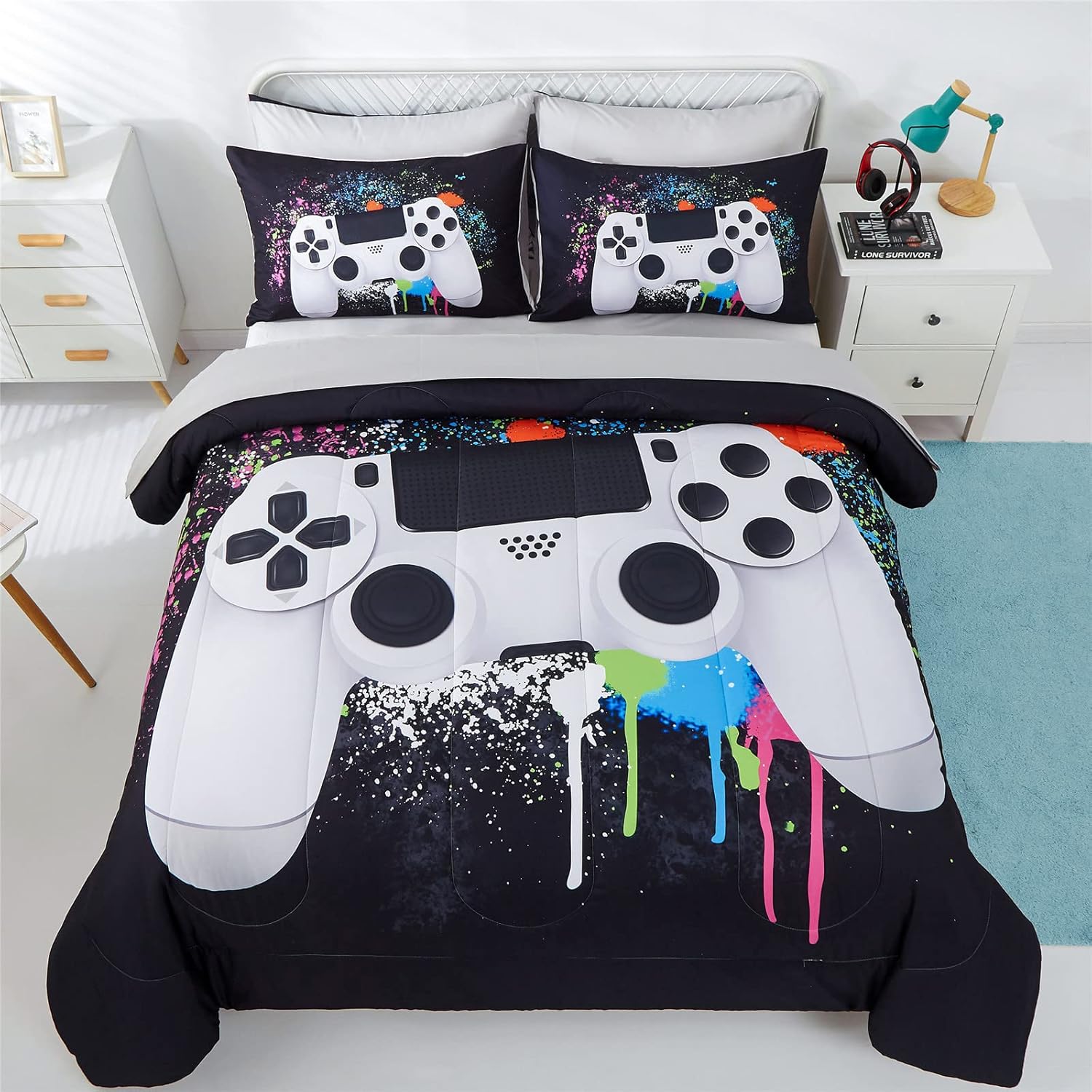 - [Great Gifts For Boys Teen]: The 5 Piece Bad In A Bag Queen Gamer Comforter Transforms Any Bedroom, Kids Room, Guest Room,Dorm Room,Play Room, Rv Or Vacation Home. Suitable For School Or Home. Great Gifts For Boys Girls Kids Teen On Birthday, Thanksgiving, Christmas And Valentin’S Day.