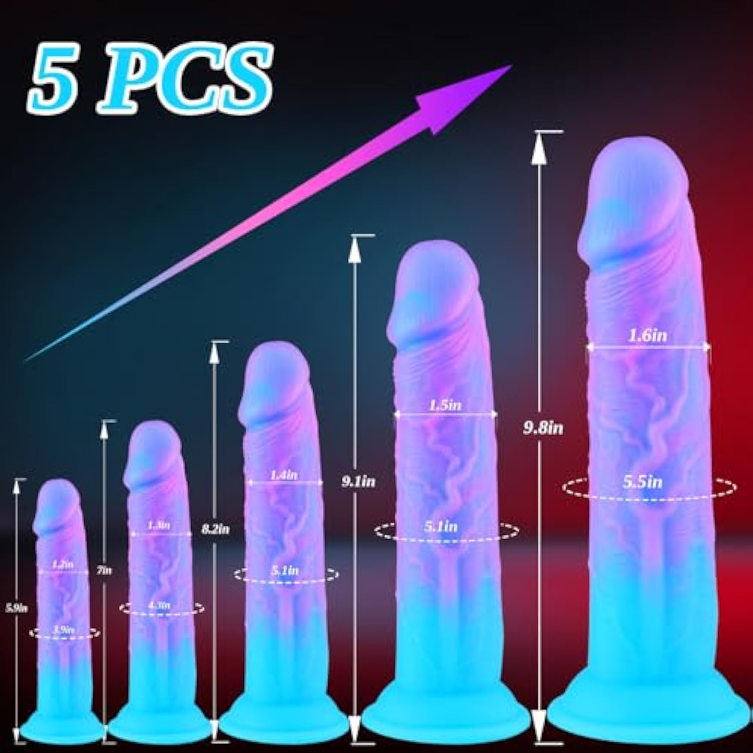 5-Piece Colorful Blue Purple Fantasy Dildo Set (6", 7", 8", 9", 10"), Realistic Silicone Small Big Huge G-Spot Dildo With Suction Cup, Prostate Dildos Anal Butt Plug Adult Sex Toys For Beginners Women