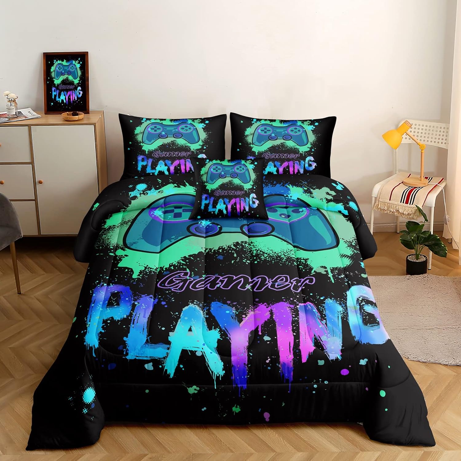 - Game Controller Design: 5 Piece Boys Gamer Bedding Set Is Crafted From Brushed Microfiber Fabric Filling,The Boys Gamer Bedding Set Use Of Colors Splash Collision Design, Coupled With The Classic Gamepad Combination, Gaming Comforter Set Perfectly Presents The Cool Gamepad Is The Perfect Decoration Of The Game Room, Deeply Loved By Game Players,For Adults, Teenagers And Children Video Game Lovers Gift Ideas.<