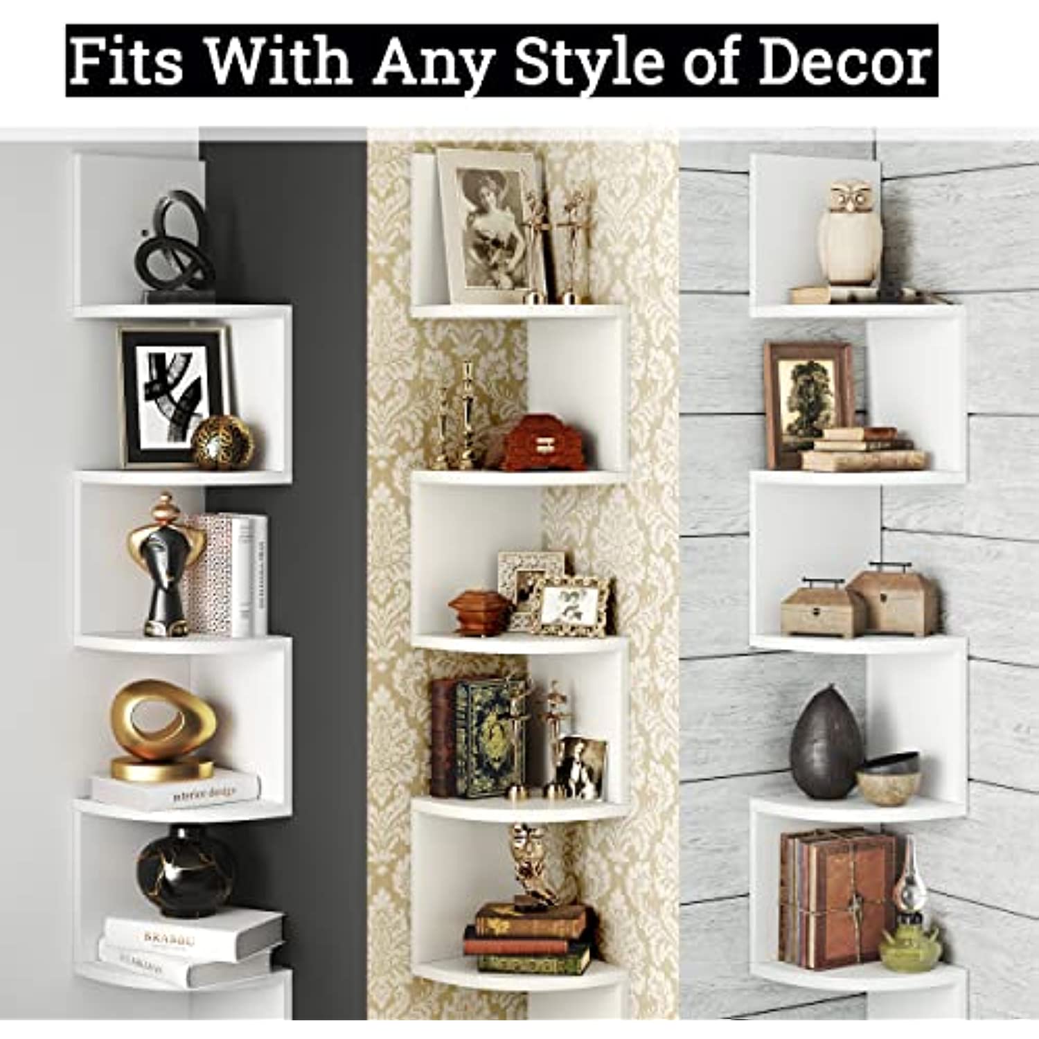 - 5 tier wall mount corner shelves Made of durable MDF laminate.