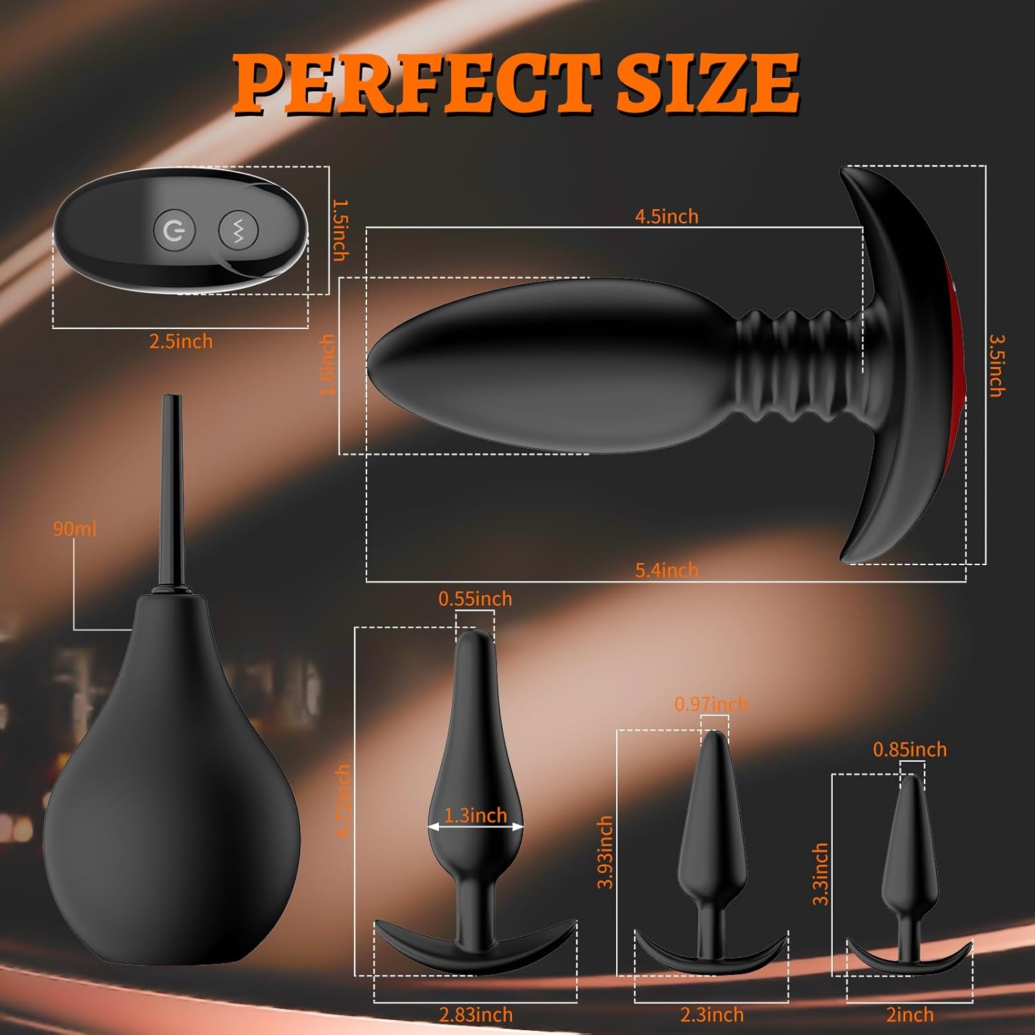 Comprehensive Set: This kit includes 1 remote-controlled vibrating butt plug, 3 non-vibrating anal plugs, and 1 enema bulb, offering a complete experience. Designed for both men and women, this set stimulates key pleasure points. For men, it targets the prostate and perineum, while for women, it provides pleasurable pressure on the vaginal wall.