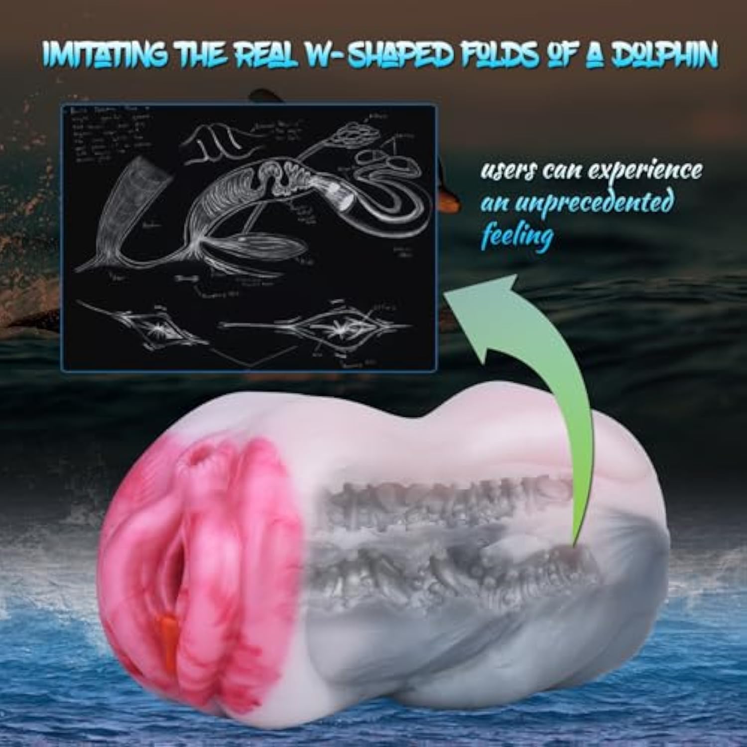 6.41" Dolphin Animal Pussy Halobios Male Masturbators, Pocket Pussy W Shaped Silicone Men Masturbator Toy With Vaginal Anal Tunnel, Silicone Dual Channel Men Masturbator Penis Excercise Toy