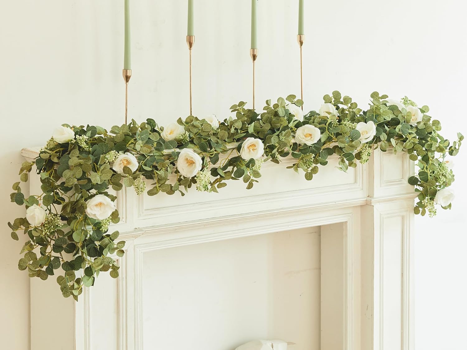 - ăHandmade Itemă The making of each garland requires our creator to spend 2.5 hoursïŒgreen gray eucalyptus garland with rose is perfect for baby shower ,wedding and home decor;