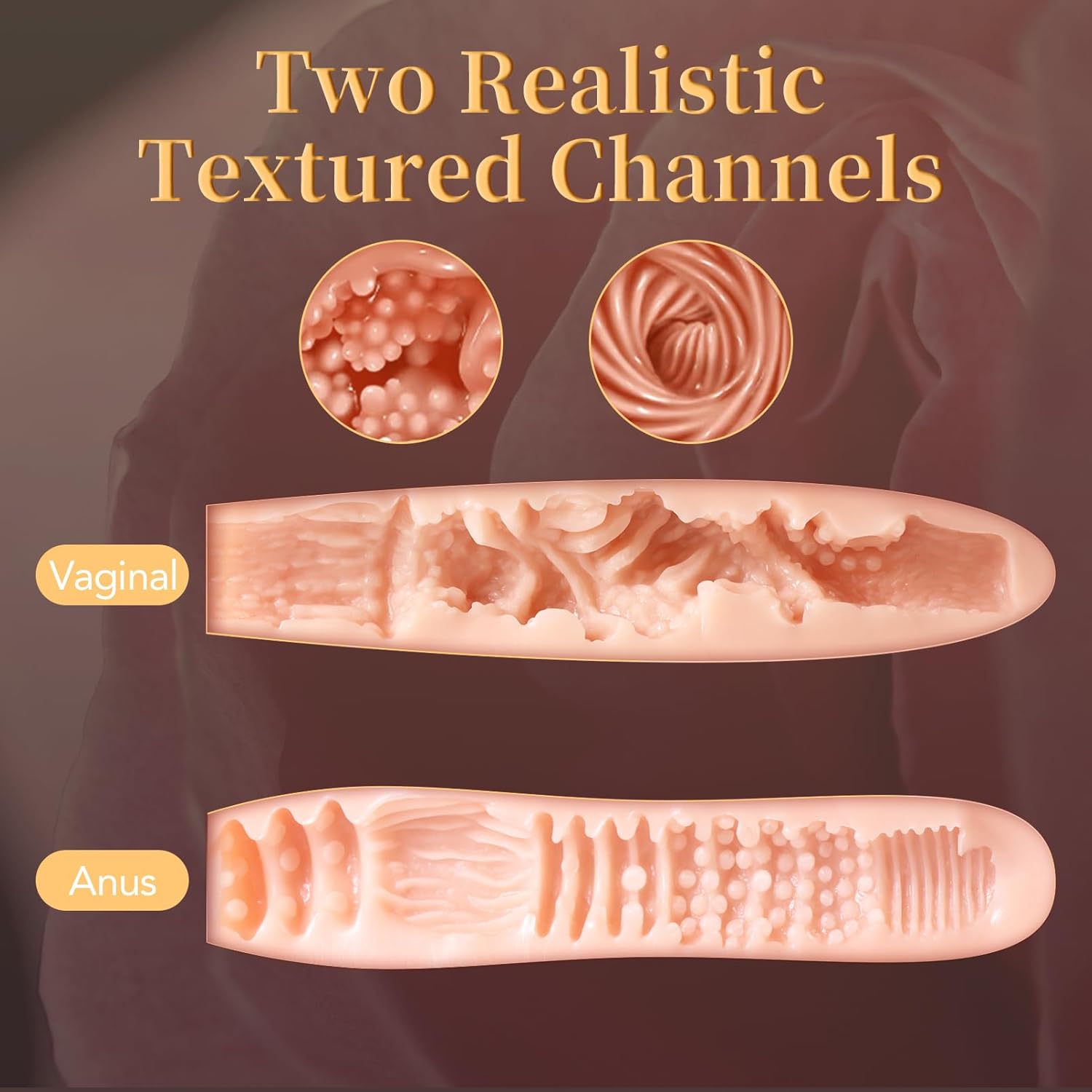 This male masturbator features two highly detailed, realistic entry points: a 5.2-inch vaginal channel and a 3.9-inch anal channel. Each offers different levels of tightness and texture, ensuring an incredibly satisfying experience with every use. The flexible material ensures compatibility with most sizes.