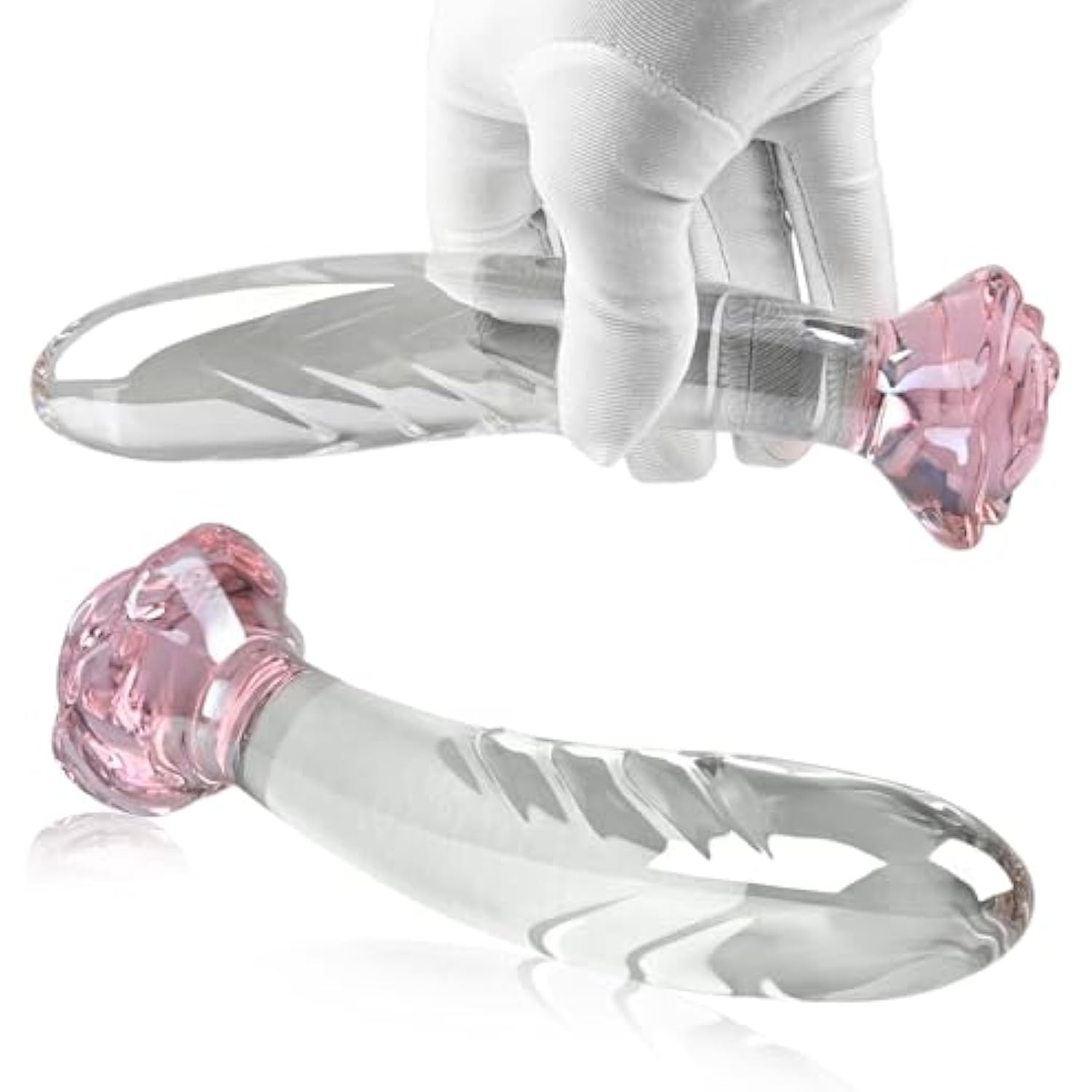7.08 Inch Glass Anal Butt Plug Dildo G-Spot Masturbating Massage Adult Games Sex Toys, Elegant Flower-Shaped Anal Plug Thick Glass Masturbators For Beginners And Advanced Players