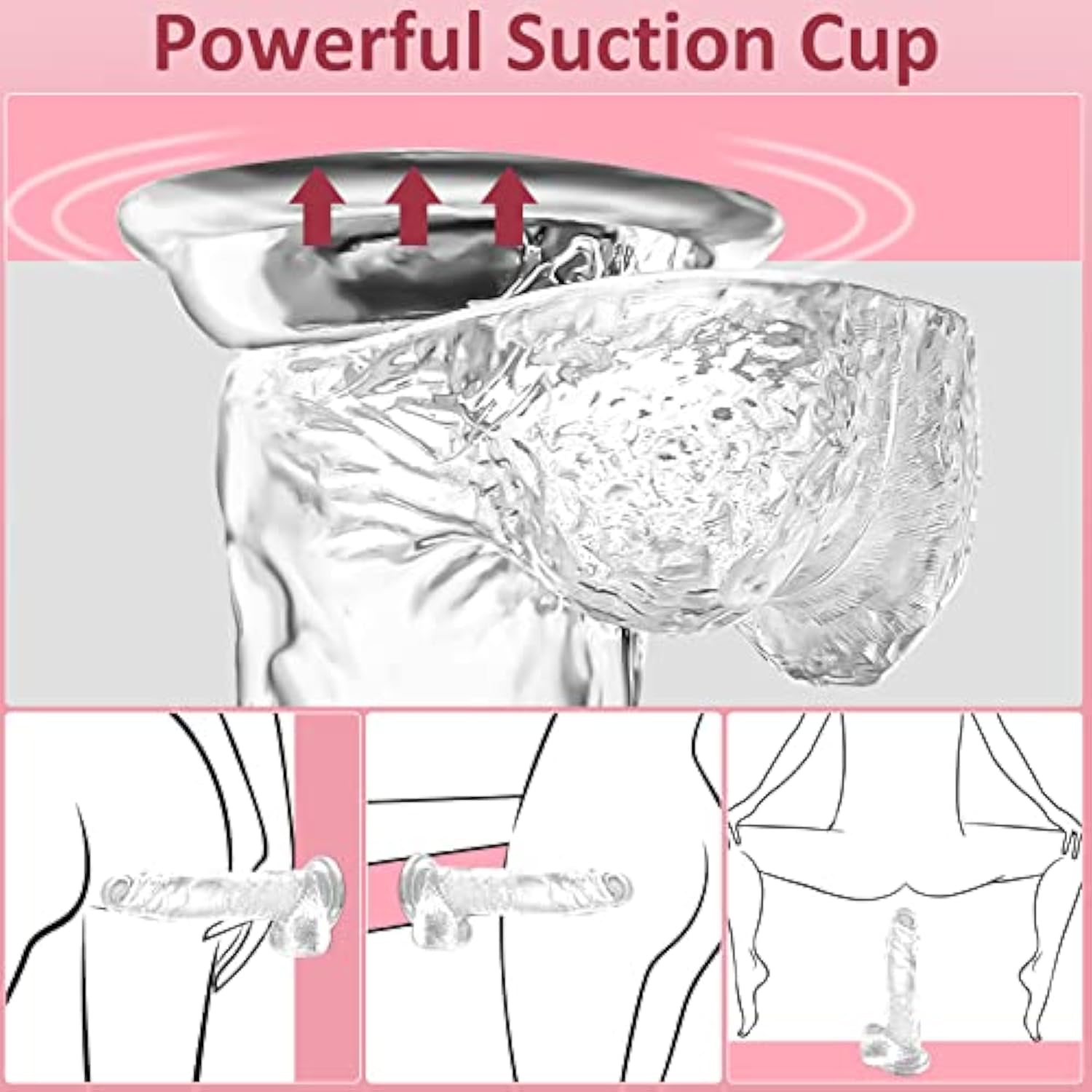 7.1 Dildo Realistic Clear Silicone Suction Cup Aldut Sex Toy?Human Safety Material, Suitable For Women/Men/Gay, Adult Toys For Women Or Beginer (Transparent)