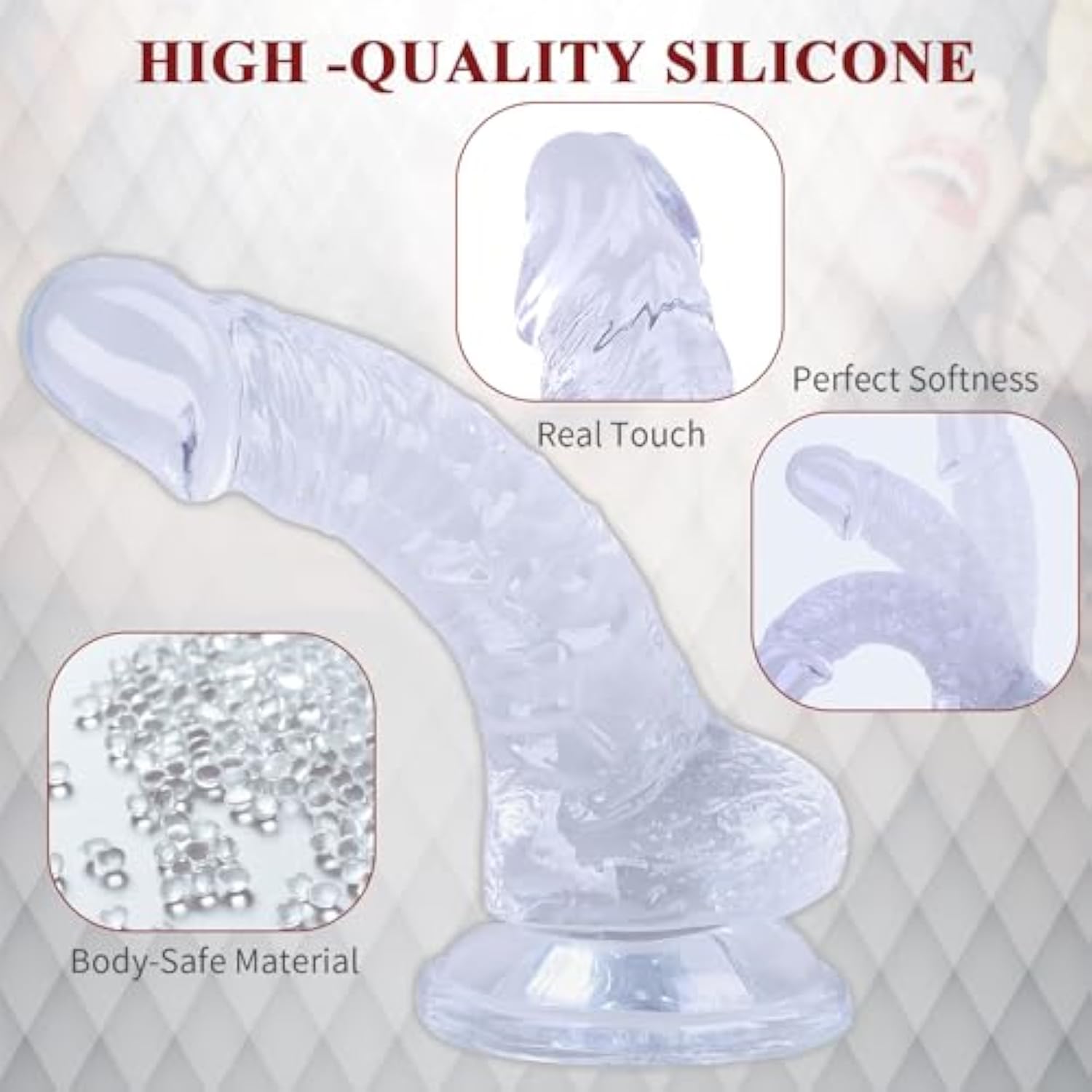 7.5 In Realistic Soft Dildo For G-Spot Stimulation & Anal Sex Games, 1.6'' Diameter Thick Classic Dildos With Powerful Strong Suction Cup For Hands-Free Play, Sex Toys For Women & Couples(Transparent)