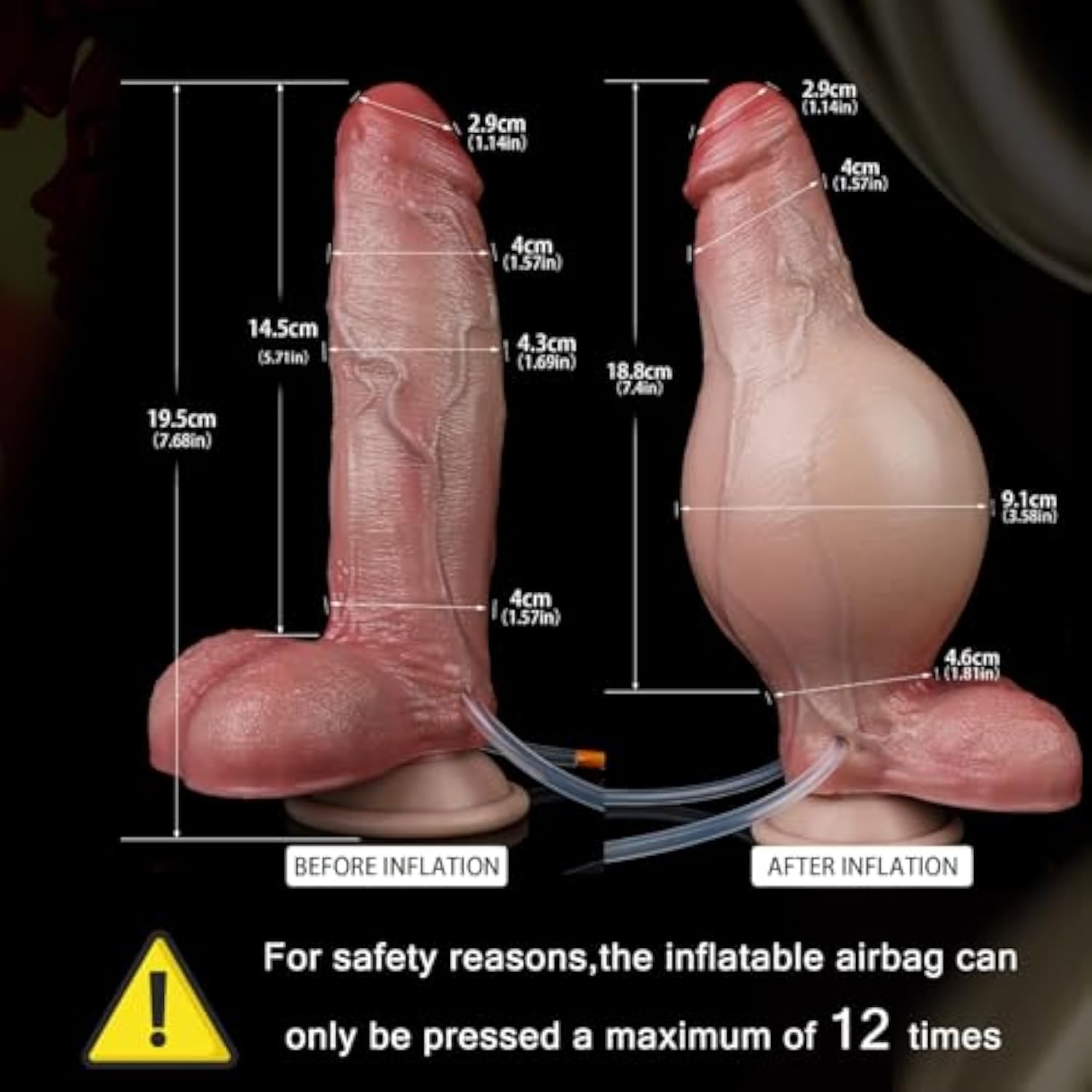 - Customized Size Dildo For Beginner Advanced Player:This Inflatable Dildo With A Adjustable Thickness (1.69" To 3.58") Is Great For Beginner