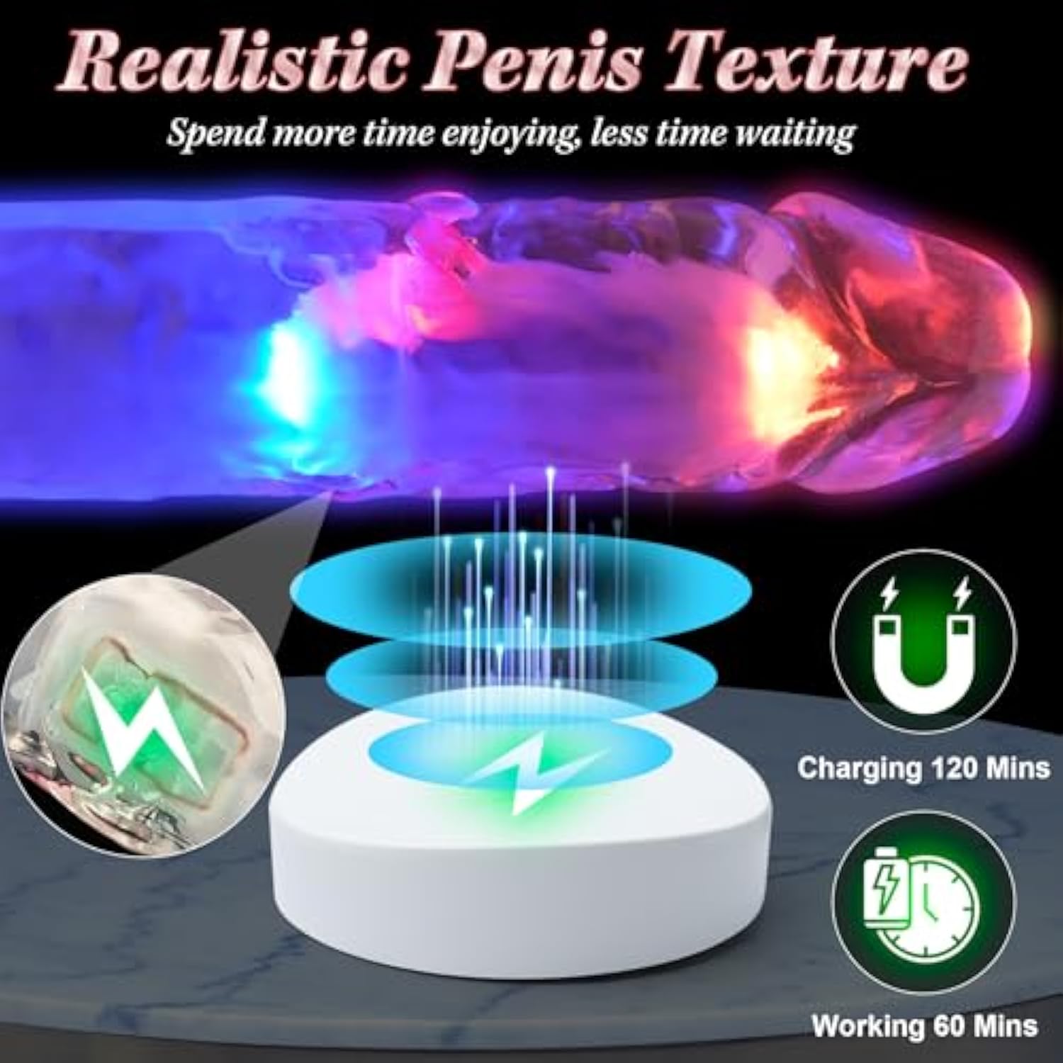 7 Inch Clear Glowing Dildo Vibrator With Suction Cup, Adult Sex Toy For Women With 10 Vibrating Modes, Remote Control, Realistic Dildos Vibrators For Men, Gay Sex Toys For G-Spot Anal Vagina