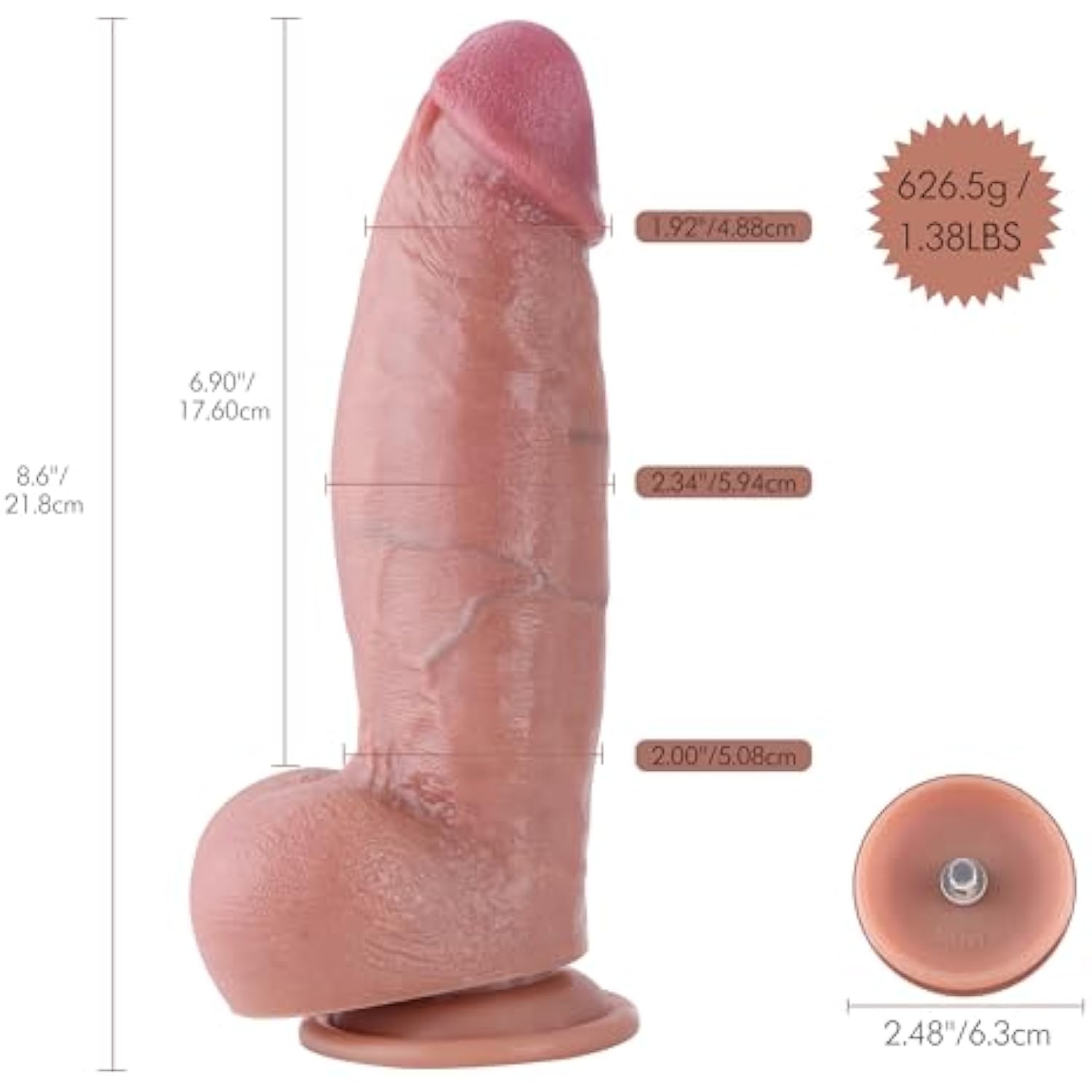 8.6" Dual-Density Dildo, 6.9" Insertable Realistic Penis With Kliclok System, Hands-Free Play Soft Sex Toy - Intermediate Series