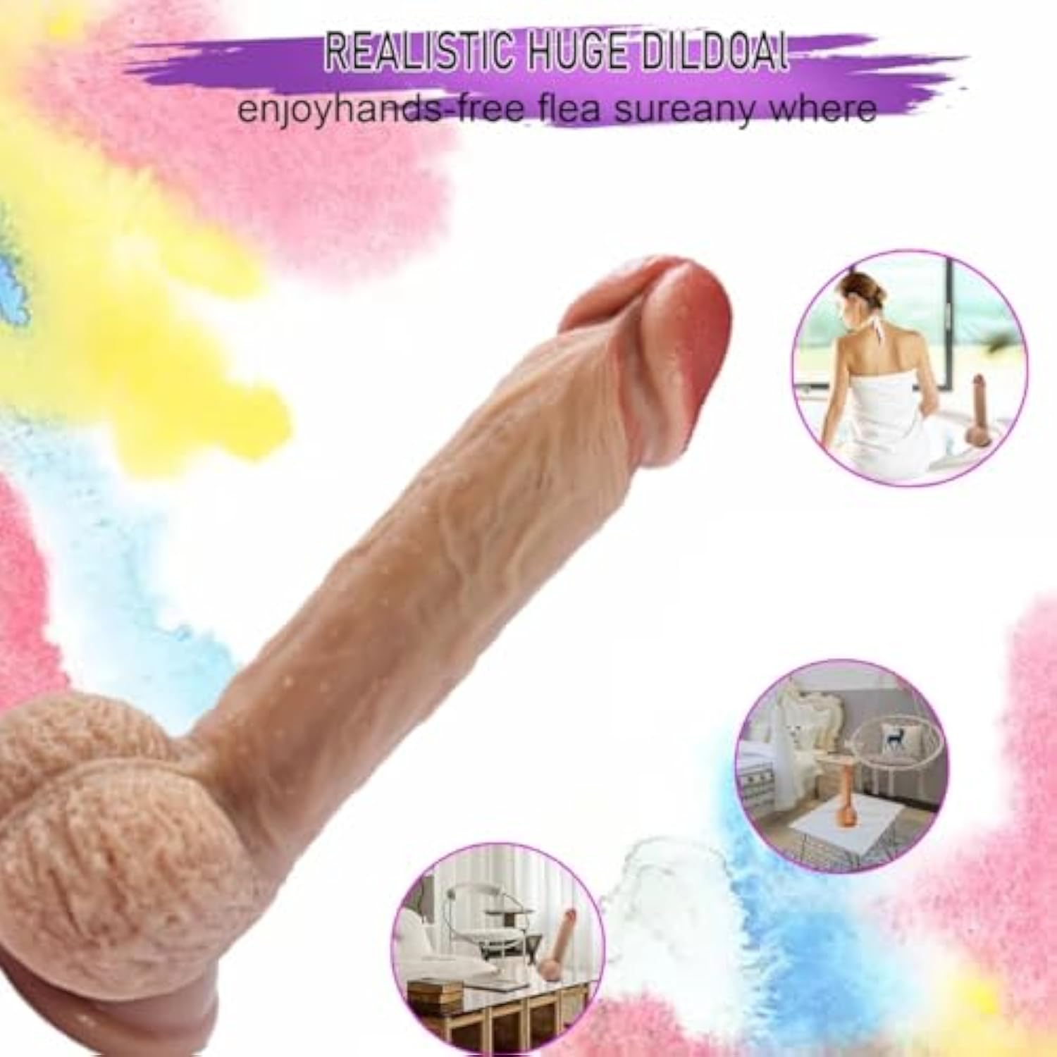 8.6'' Lifelike Huge Silicone Dildo Adult Sex Toys for Women, Soft Silicone with Strong Suction Cup for Hands-Free Play, Dildo with Balls Curved Shaft and Balls for Vaginal G-spot and Anal Play.