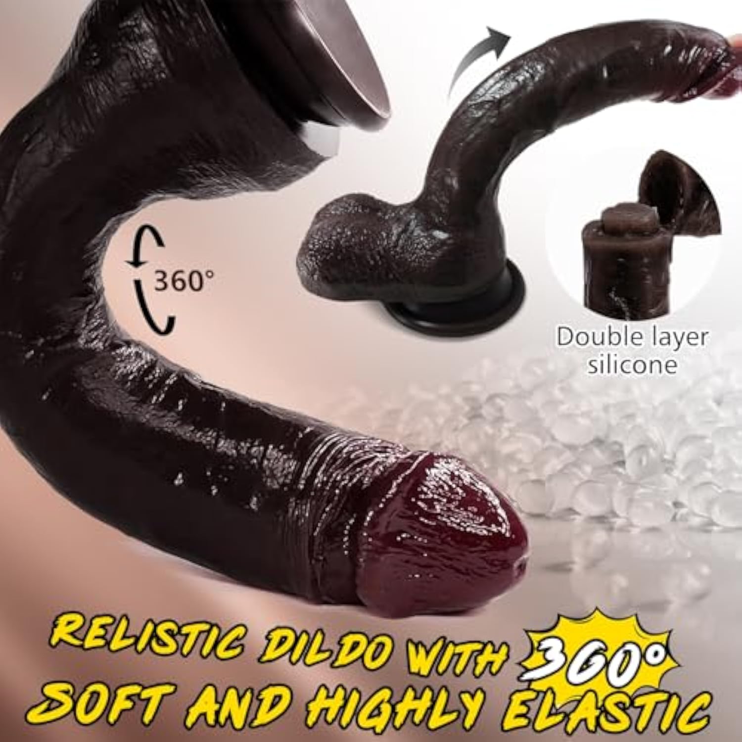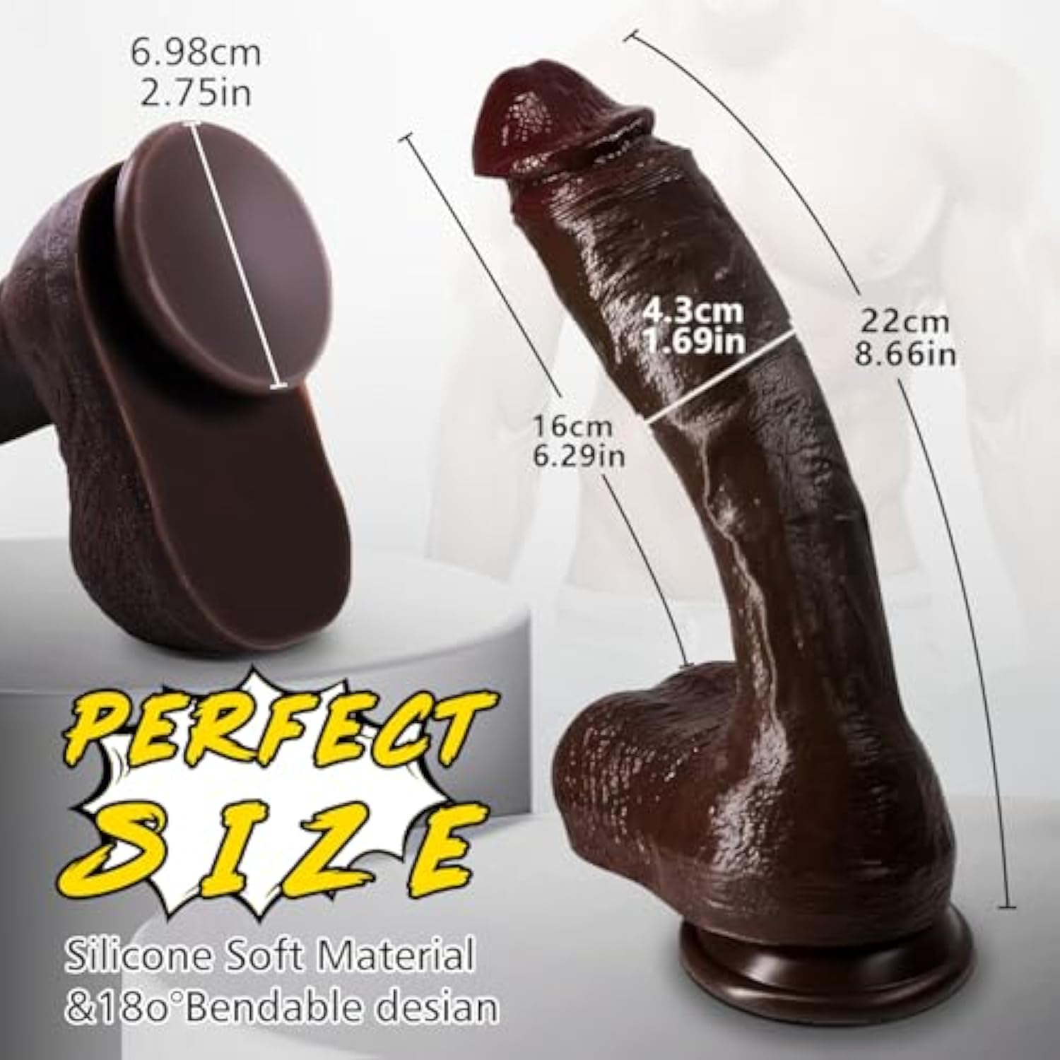 8.66 Inch Realistic Silicone Dildo - Real Touch-Safe Design With Super Strong Suction Cup, Lifelike Black Adult Toy For Hands-Free Vaginal & Anal Stimulation