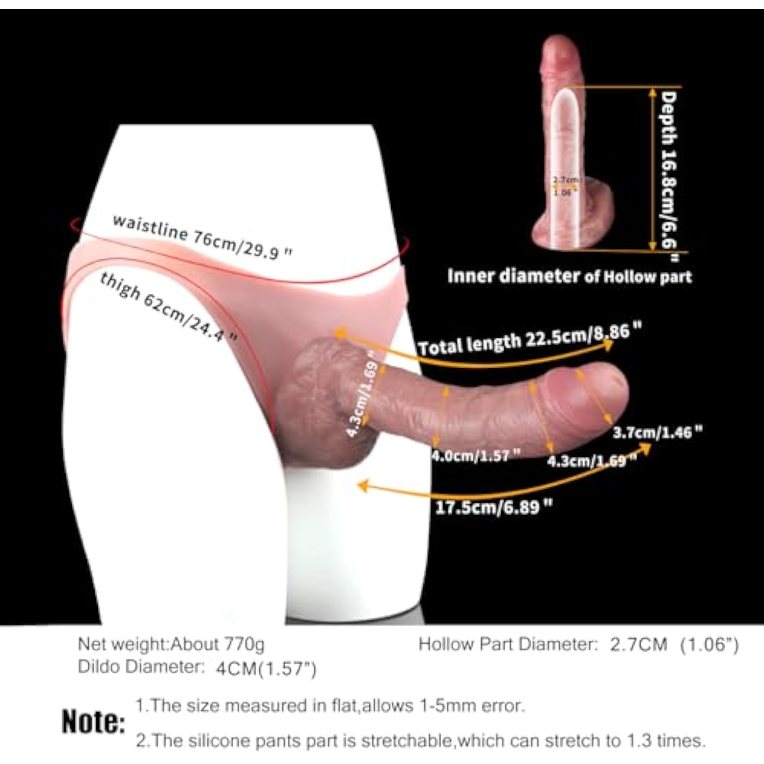 8.86" Long Hollow Dildo Male Enlarge Girth Penis Sleeve Pants,Silicone Extender Length Reusable Men Condom Pump,Adult Transgender Crossdresser Sex Toy Cloth