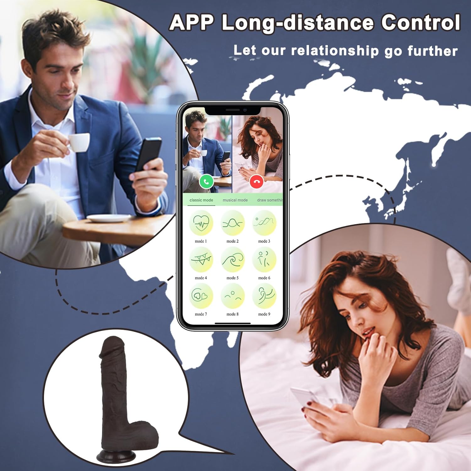 Remote Control & Suction Cup Design: Perfect for long-distance play, this dildo vibrator can be controlled remotely via an app, allowing your partner to enjoy the experience as well. The strong suction cup base adheres to any smooth surface, allowing you to enjoy the toy hands-free on various surfaces, from tables to doors.