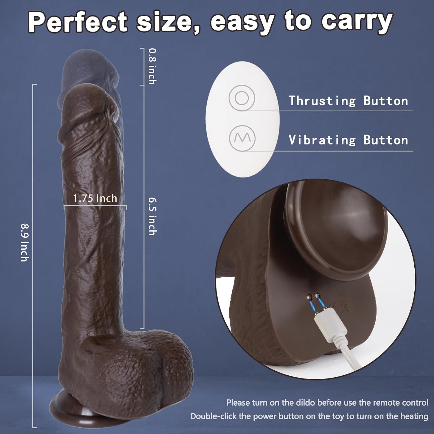 Powerful Thrusting Dildo Vibrator for Women: This 3-in-1 adult toy features telescoping, vibrating, and rotating functions. Equipped with two powerful motors, it offers 9 vibration modes and 3 thrusting speeds for an enhanced experience. With a 6.5" insertable length that can extend up to 7.3" and a 1.75" diameter, it provides deep G-spot stimulation.