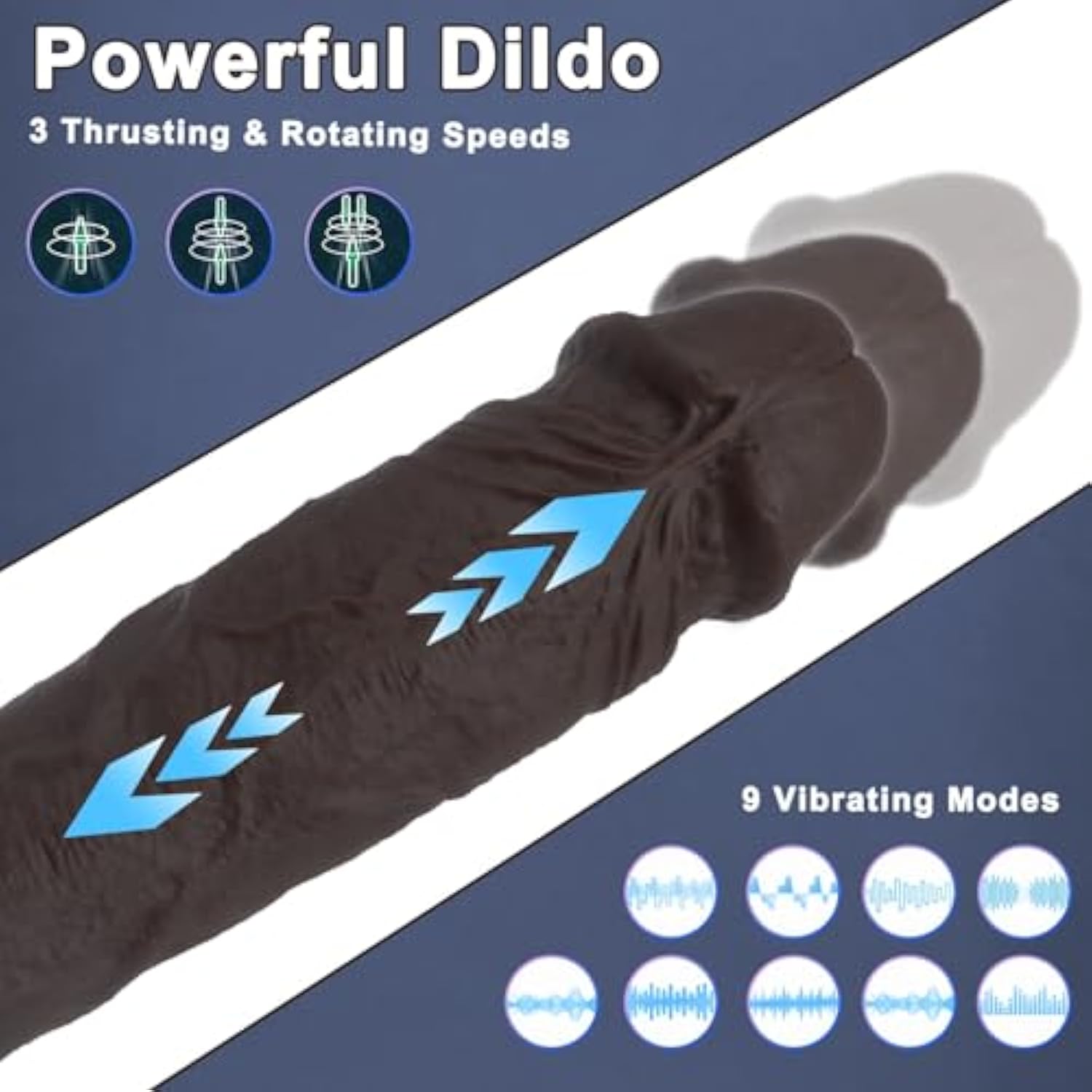 - Powerful Thrusting Dildo Vibrator For Women: 3 In 1 Adult Sex Toys With Telescoping, Vibrating And Rotating Function Is Ready For You. Two Powerful Motors Provide You With 9 Vibration Modes And 3 Telescopic Frequencies. You Can Also Enjoy The Fun Of Rot