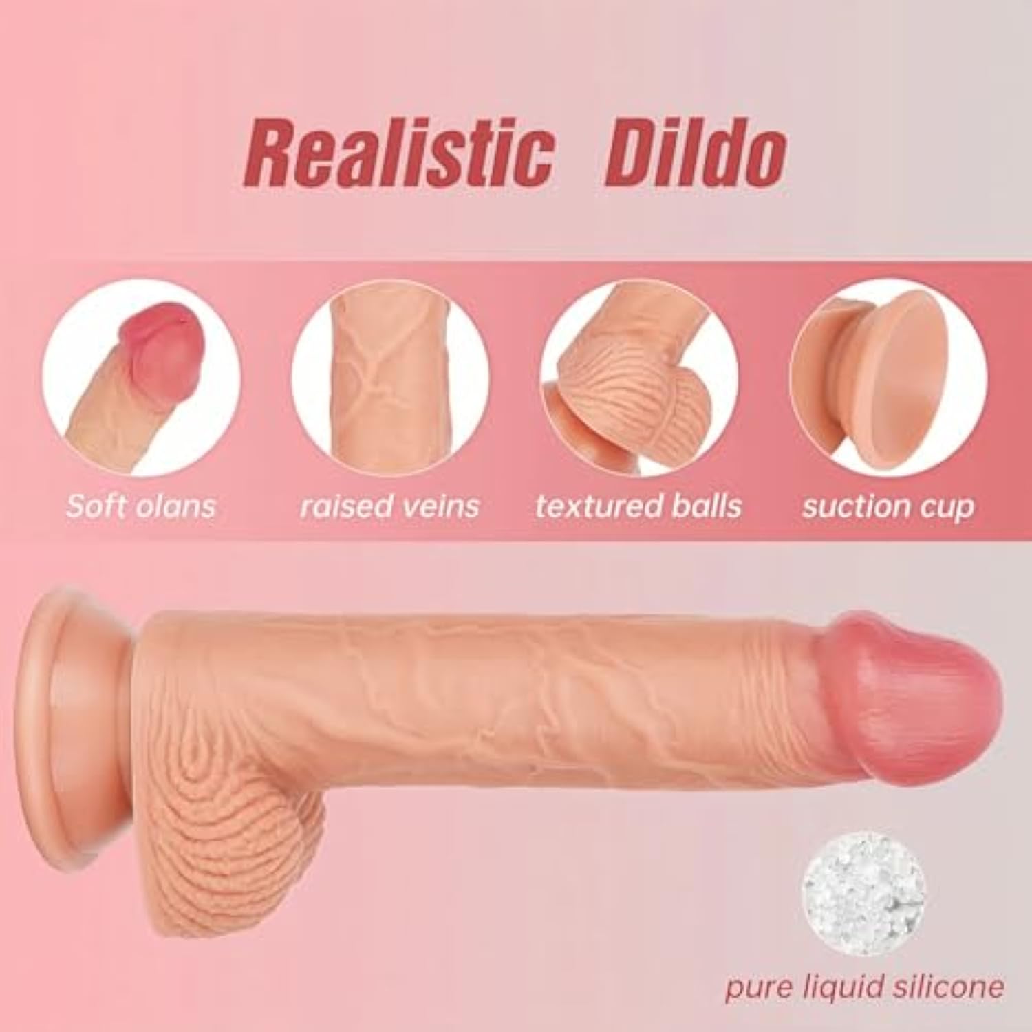 8 Inch Realistic G Spot Dildo With Suction Cup, Soft Silicone Dildos, Lifelike Sensations,Premium Female Sex Toy Women Love