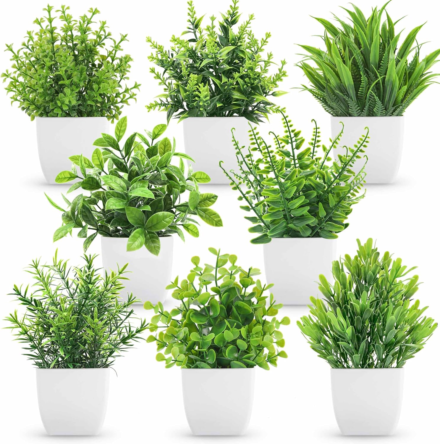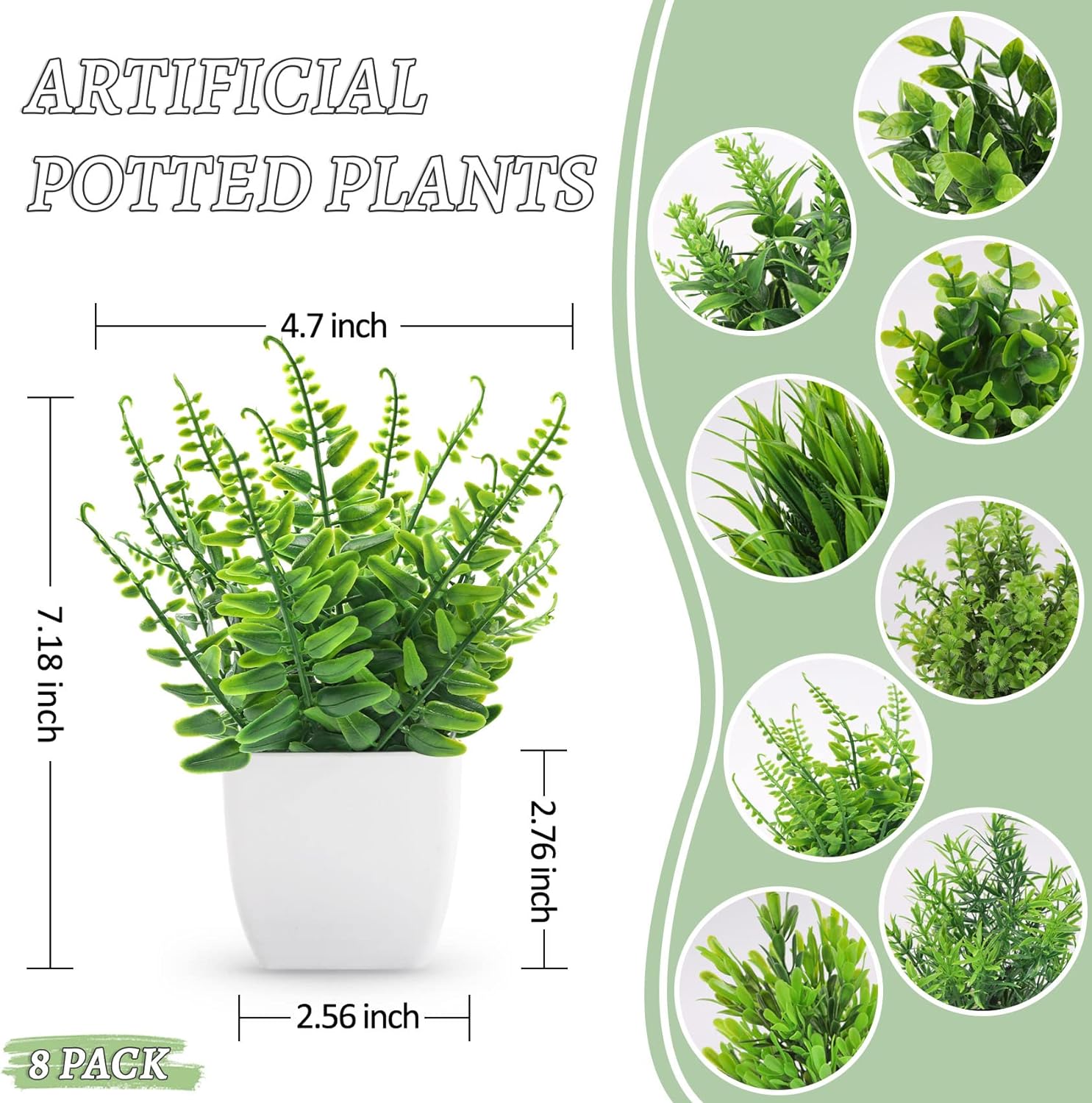 8 Packs Fake Plants Small Artificial Faux Potted Plants for Home Office Farmhouse Bathroom Bedroom Decor Indoor