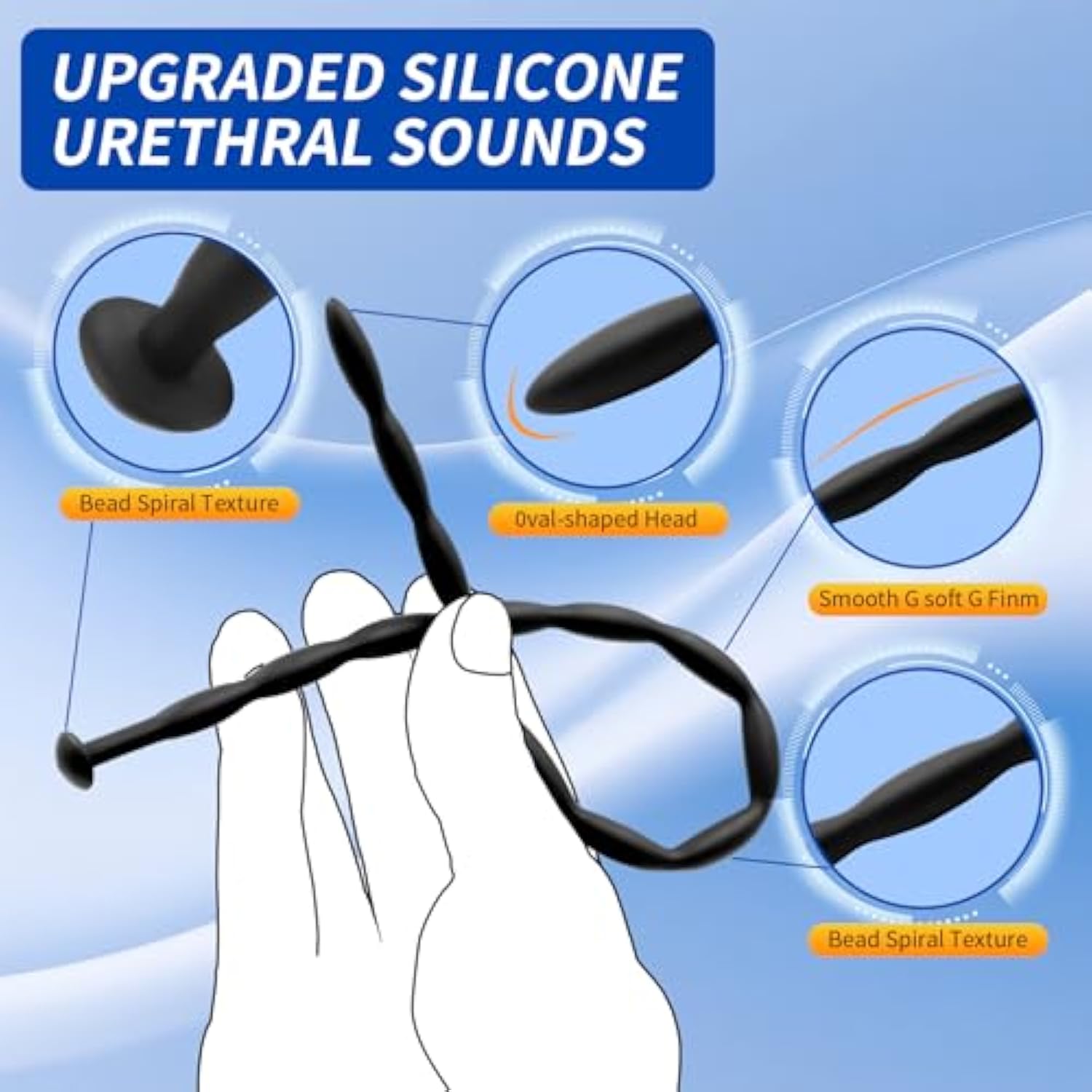 | 8-Piece Graduated Urethral Sounding Kit - Perfect For Beginners To Advancedusers,These 0.12 - 0.39Inch Diametersilicone Urethra Sounds Offer Progressivestretching.The 11.8 Inches Flexible Rods Withtextured Beads Deliver Customized Penisstimulation, Teasing Nerve Endings Forintense Solo Or Partner Play | | Body-Safe Silicone Urethral Dilators-Ultra-Soft Medical-Grade Siliconeensures Smooth Insertion And Prostatestimulation. The Flexible Urethral Plugscontour To Your Anatomy For Comfortabledepth Control, Creating Throbbingpleasure During Exploration. | | Premium Polished Surface Technology-Each Catheter Sound Features Oursmoothest Finish To Reduce Discomfort.The Gliding Silicone Design Allows Deeperpenetration While Awakening Pulsatingsensations With Every Movement. | | Ergonomic Prostate Massager Designspiral Bead Texture Enhances Friction,While The Fared Mushroom Base Ensuressafety. The 11.8" Insertable Lengthdelivers Targeted Stimulation For Bothsolo Masturbation And Couple'S Play | | Discreet Packaging - Yoururethral Training Kit Arrives In Plainpackaging With No Product Markings