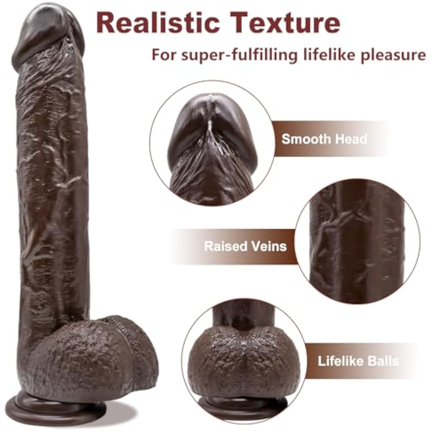 9.25 Inch Realistic Dildo Adult Sex Toys For Women Men, Lifelike G Spot Clitoral Black Huge Dildo With Strong Suction Cup For Hands-Free Play, Flexible Bbc Anal Toys For Lesbian Strap-On Play (Brown)