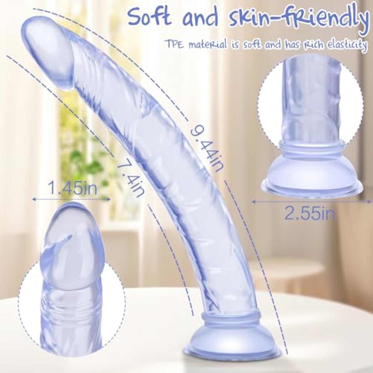 9.4 Inch Extended Dildo G Spot Stimulation Dildos With Powerful Suction Cup For Hands-Free Play Anal Adult Sex Toy For Women Men And Couple (Blue)