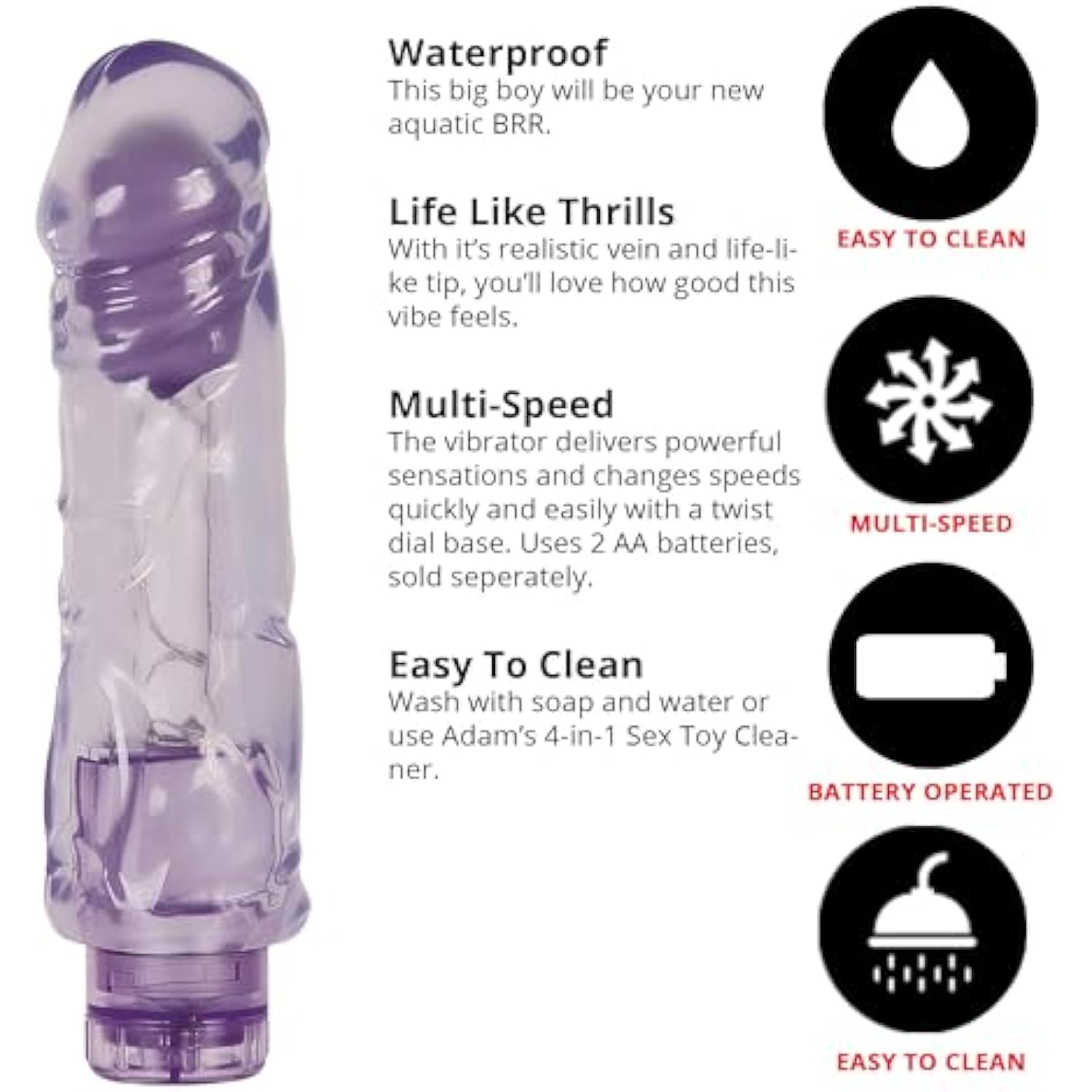 Adam And Eve Chubby Fun Personal Vibrator, Thick Thrusting Multi Speed Dildo, Smooth Adult Sex Toy For Women And Couples, Stimulates G Spot, Adjustable Vibrations, Waterproof, 9 Inch Purple Design