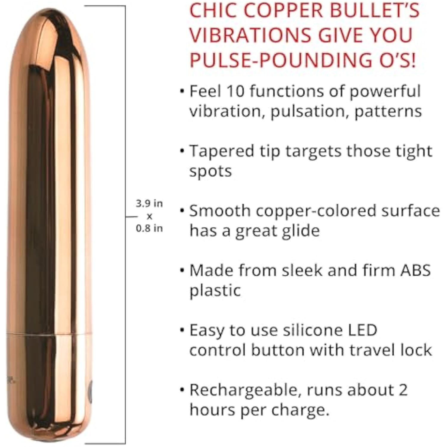 =- Tapered Tip For Targeted Stimulation: The Sleek Copper Colored Surface With A Tapered Tip Delivers Precise Pleasure To All Your Sensitive Areas. Perfect For Clit, Nipples, Taint, And Even G Spot Play, This Bullet Vibrator Offers Pinpoint Stimulation And