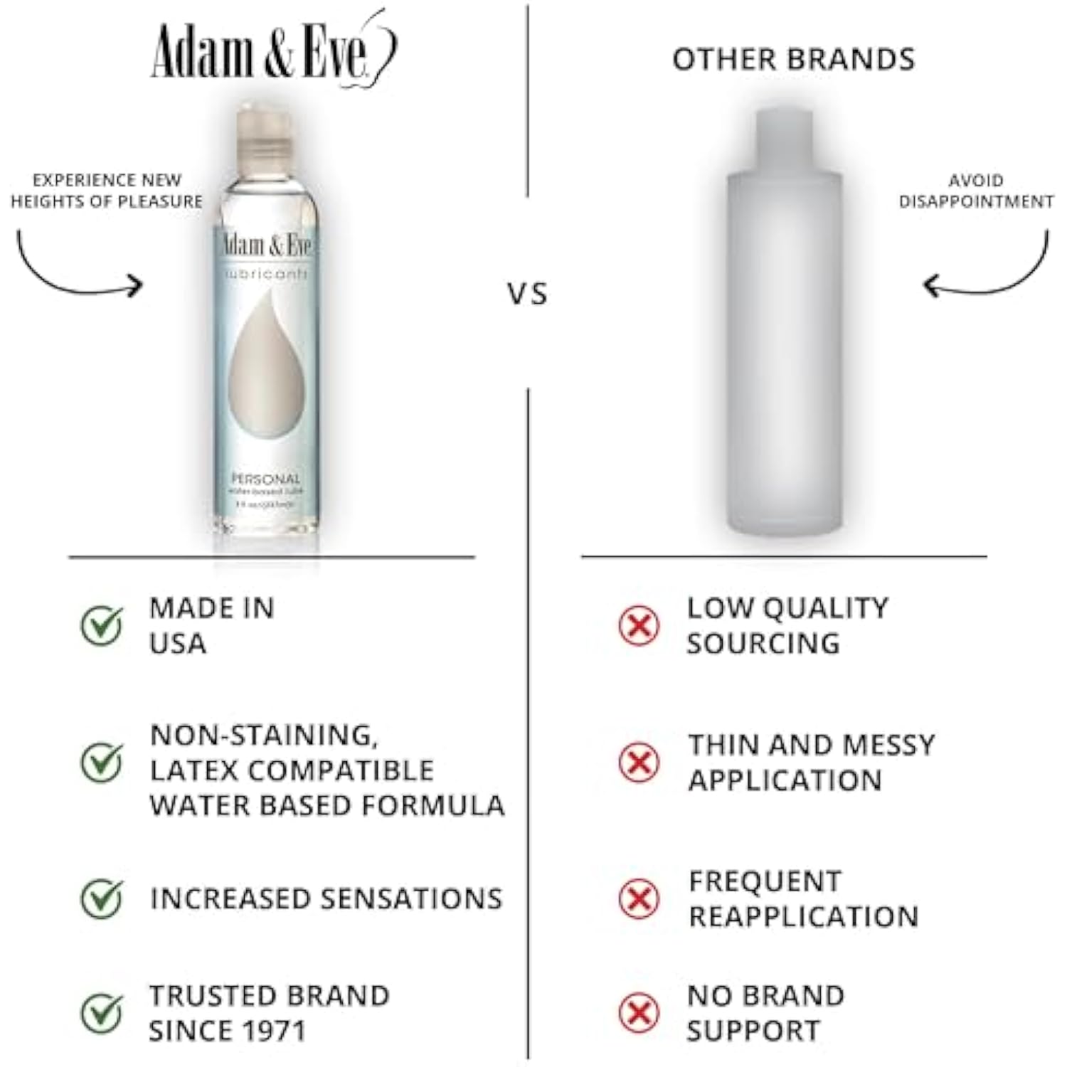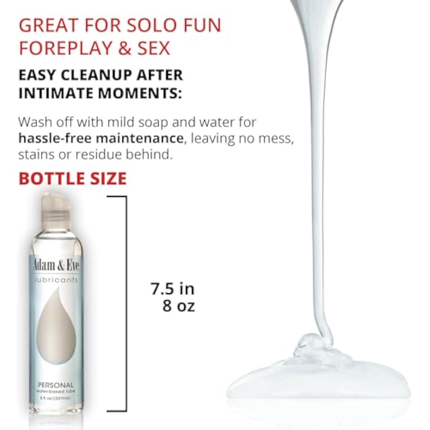 Adam And Eve Premium Water Based Lube, Personal Lubricants For Privacy And Toys, Thick Non Sticky Non Staining Long Lasting Formula For Men Women Couples, Ideal For Sex And Massage, 8 Oz Bottle
